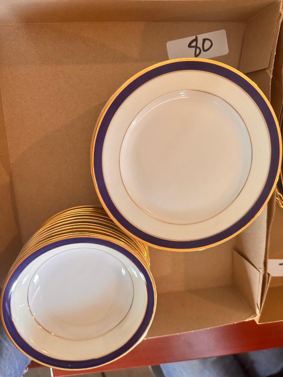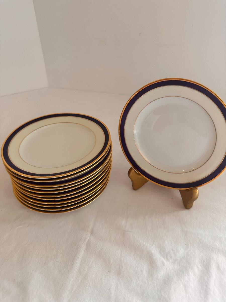 Blue and Gold Band Epiag Czechoslovakia China Berry Bowl and Bread Plate Lot As Pictured