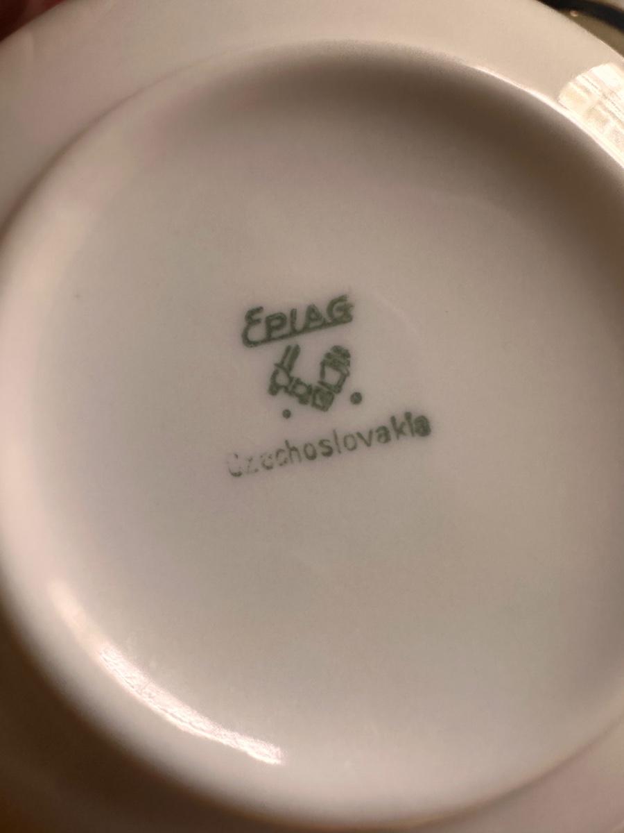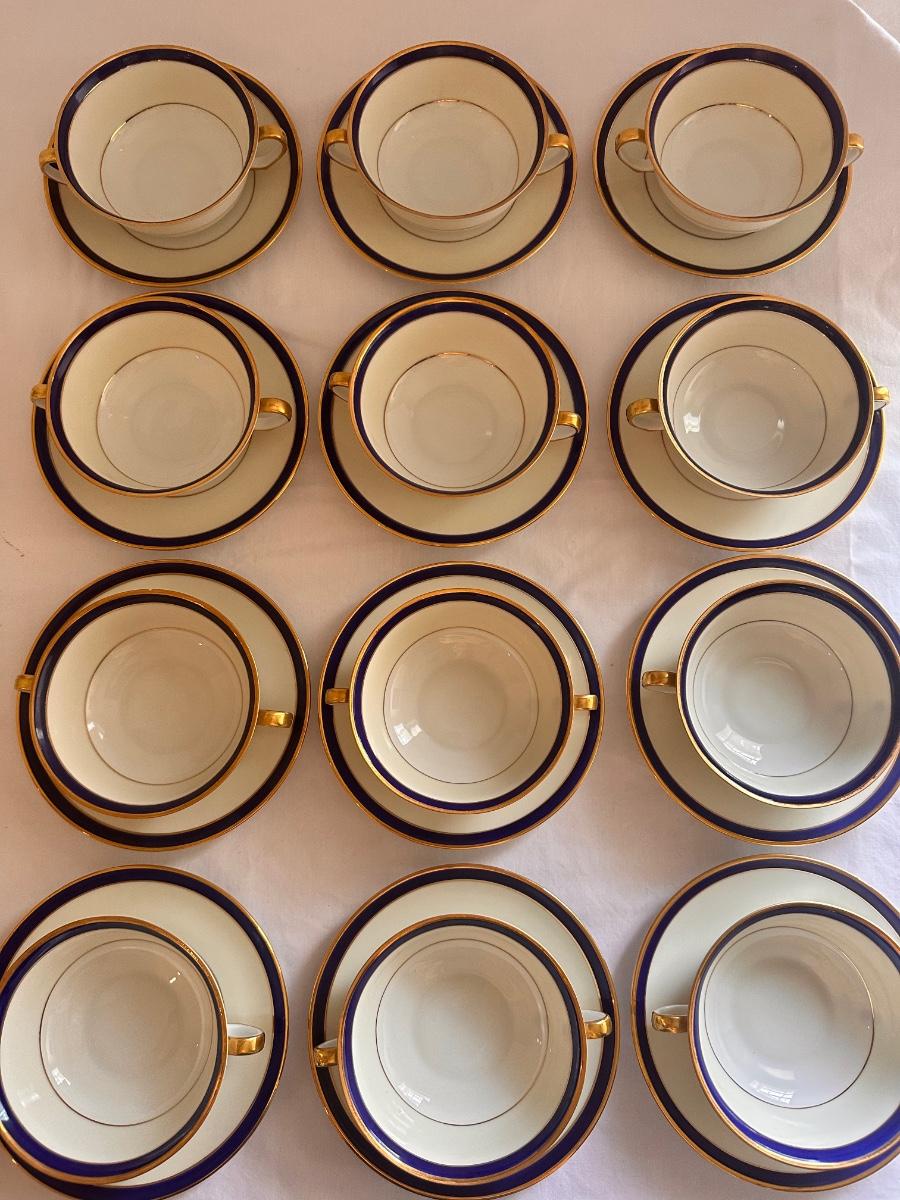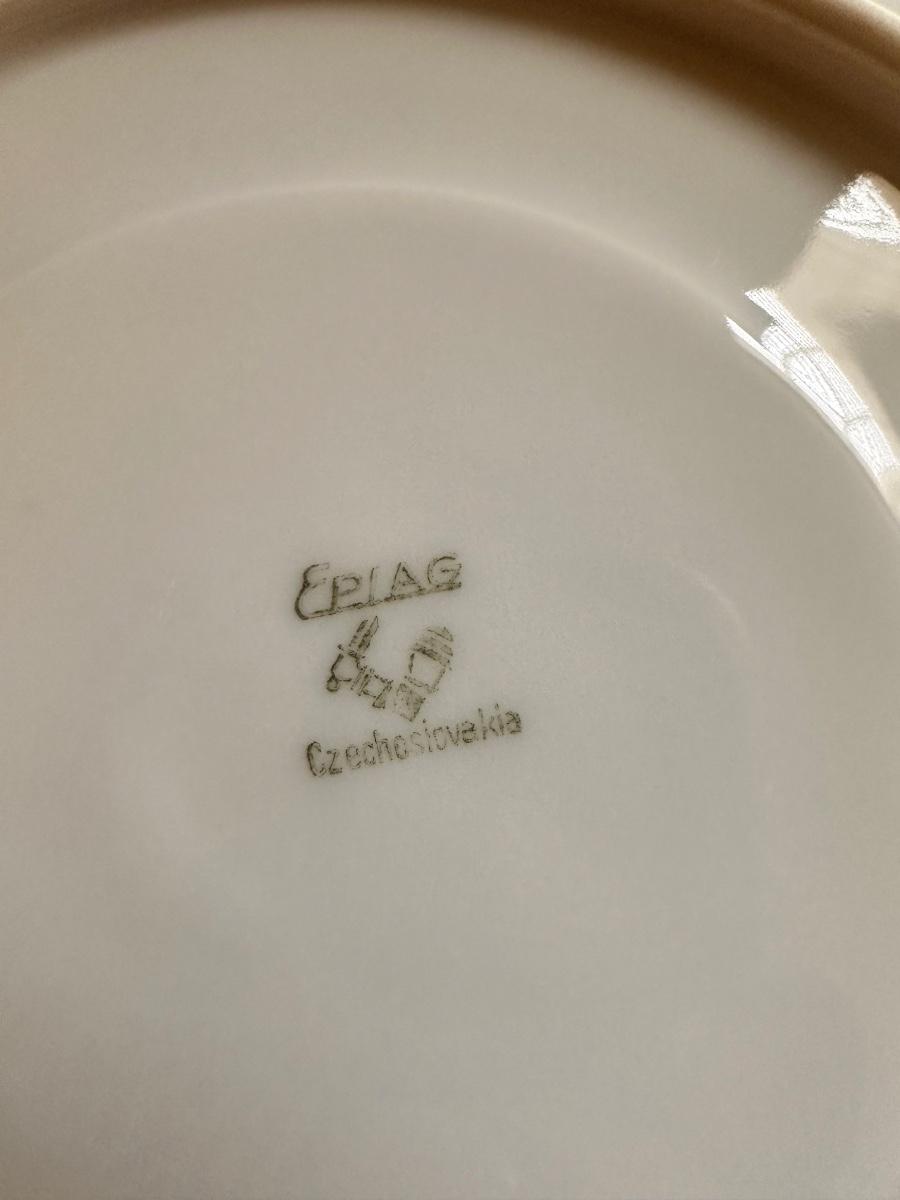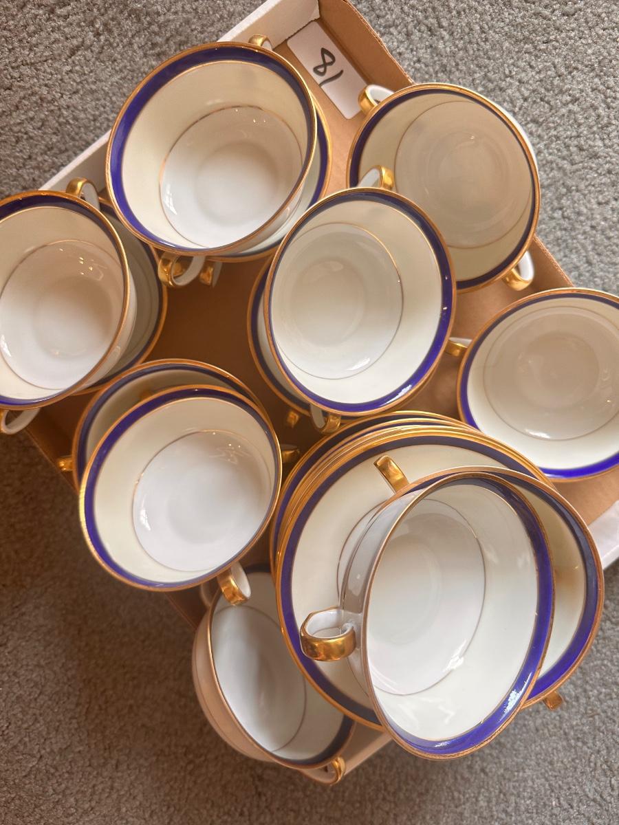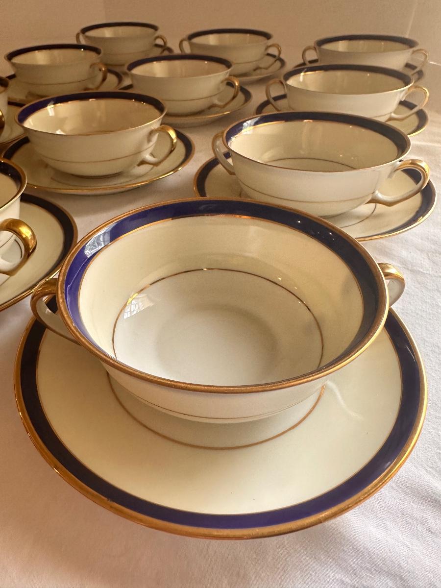 Blue and Gold Band Epiag Czechoslovakia China Cream, Soup Bowl Lot As Pictured