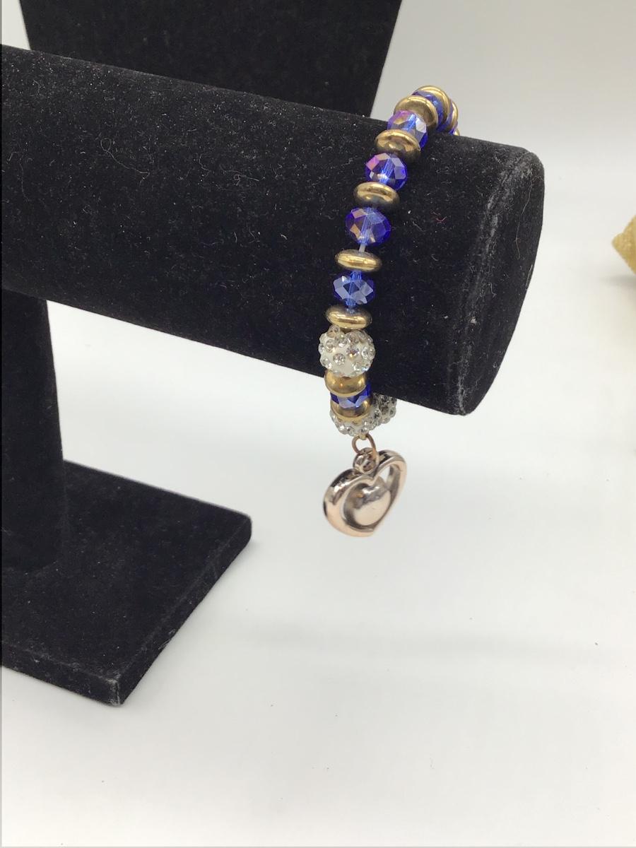 Blue and gold toned beaded bracelet