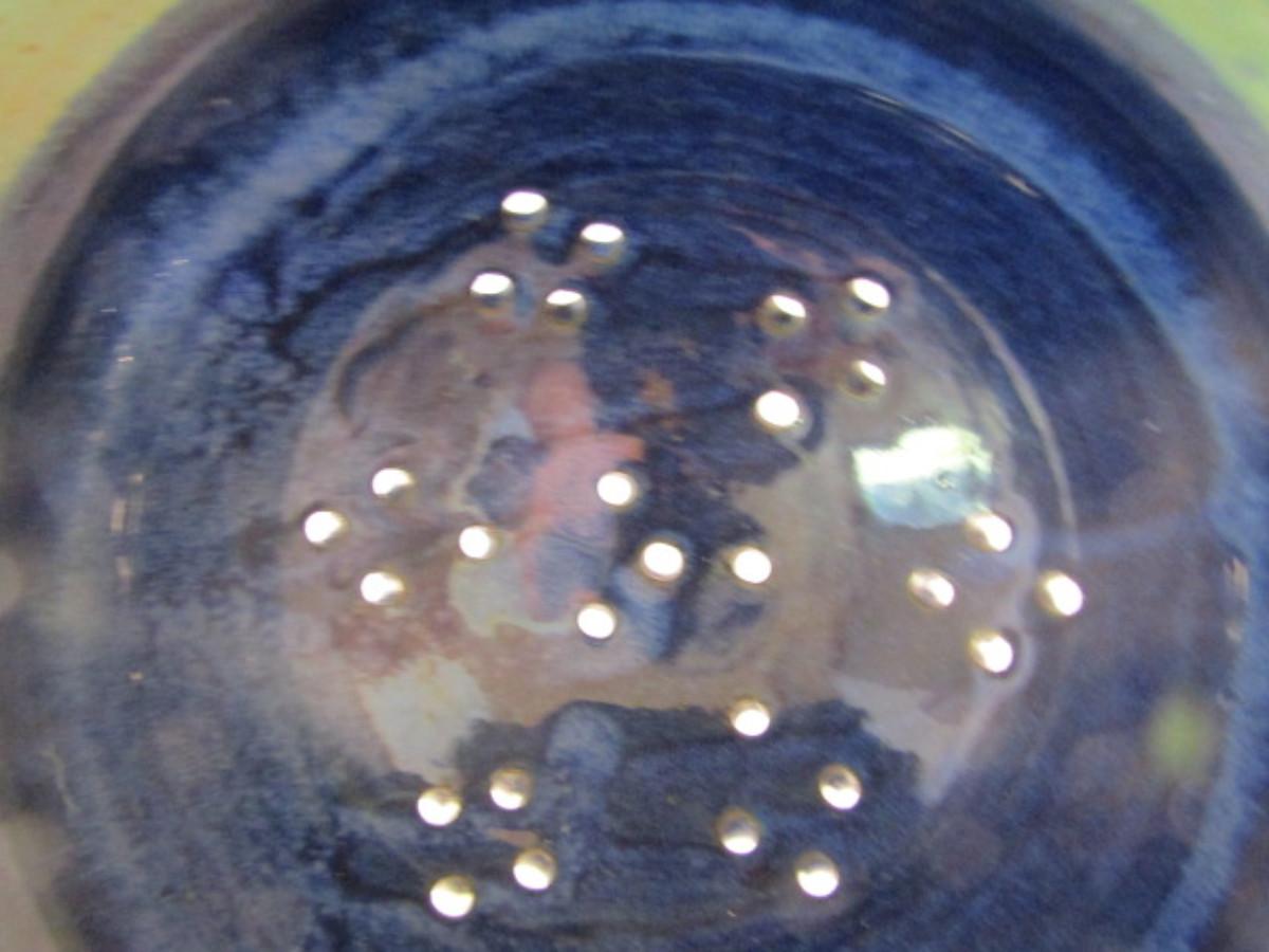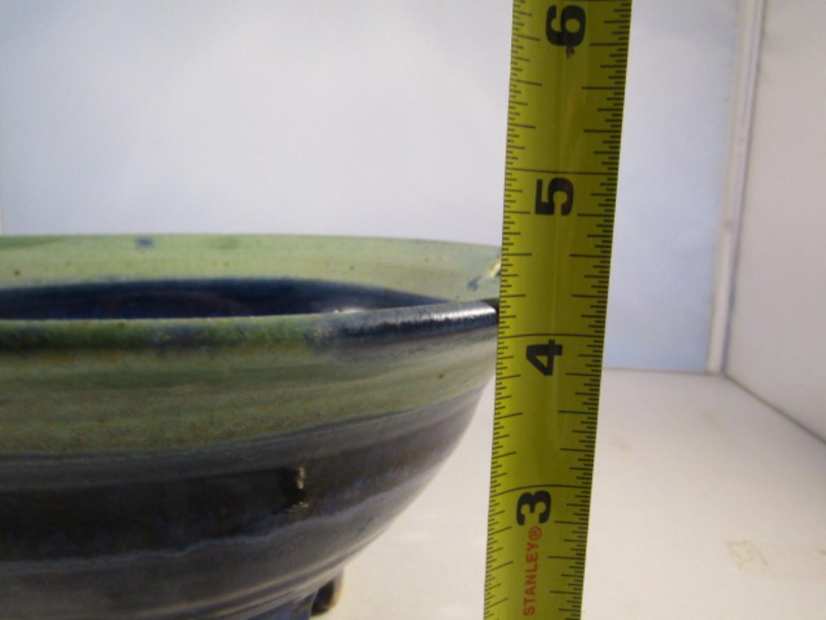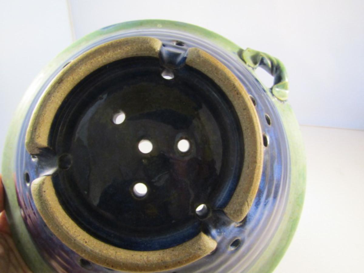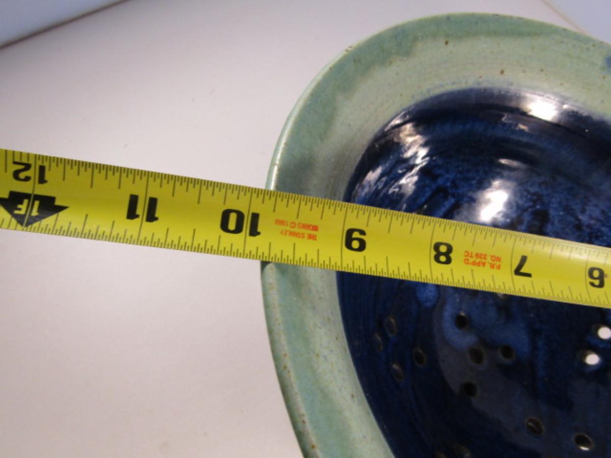 Blue and Green Hand Thrown Pottery Colander- Approx 10" in Diameter