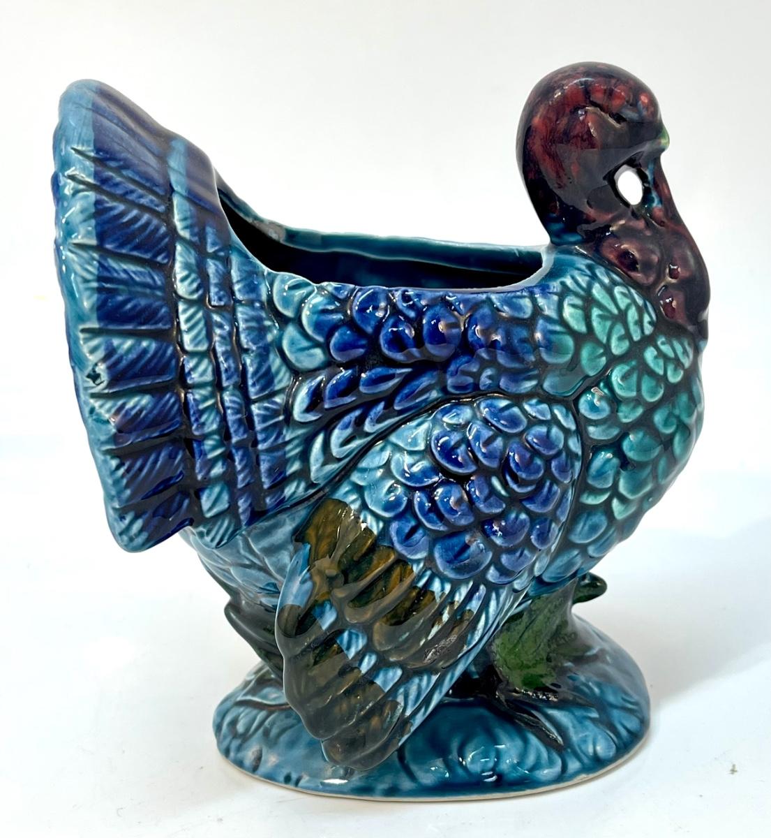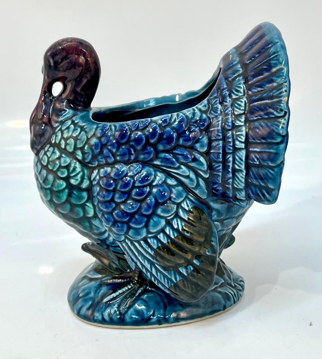 Vintage Napcoware Blue & Purple Thanksgiving Turkey Planter Pot Vase Figurine