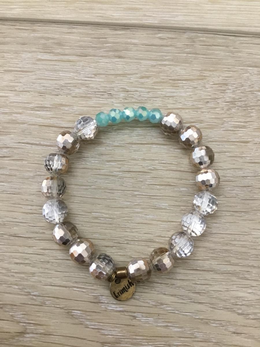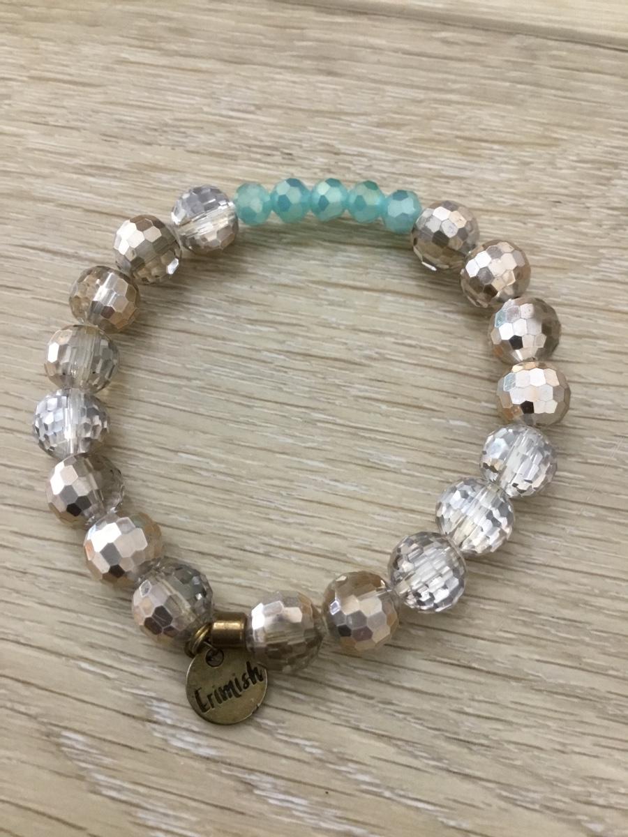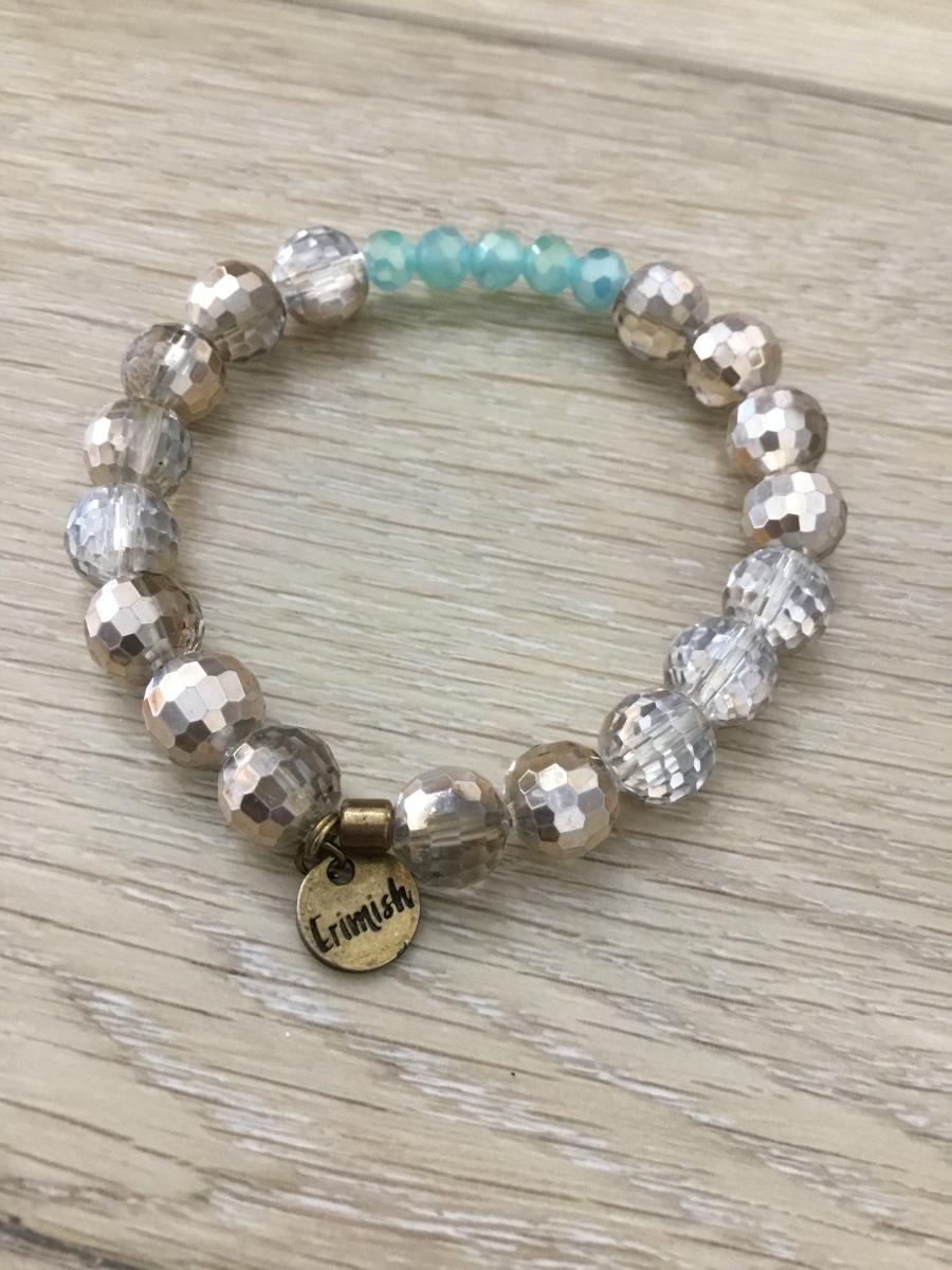 Blue and silver tone charm beaded stretchy bracelet