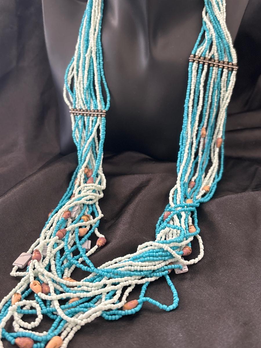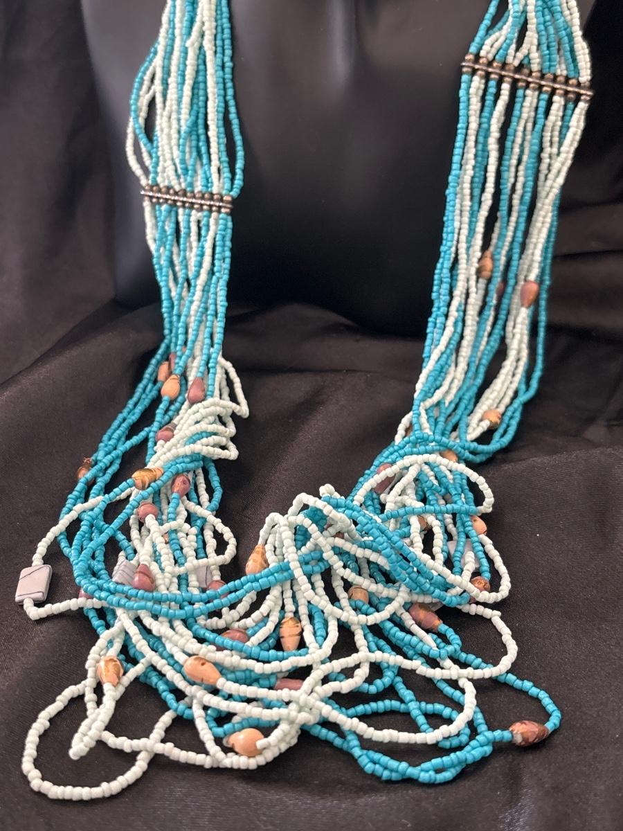 Blue and white beaded statement necklace