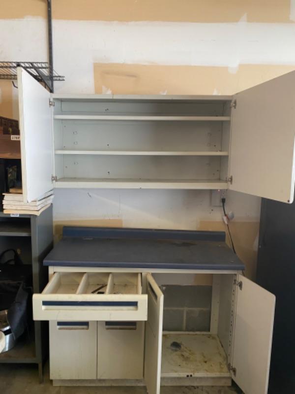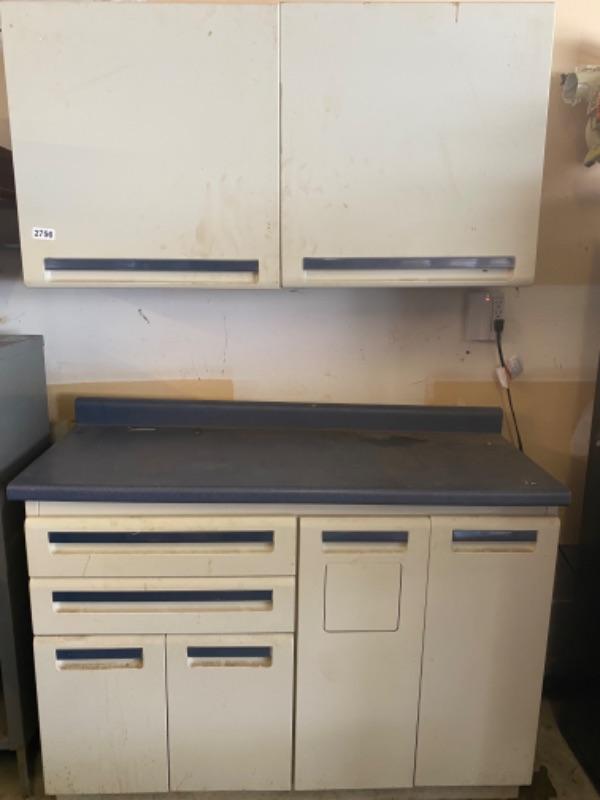 Blue and white cabinet and wall cabinet made of metal and plastic lot 2756