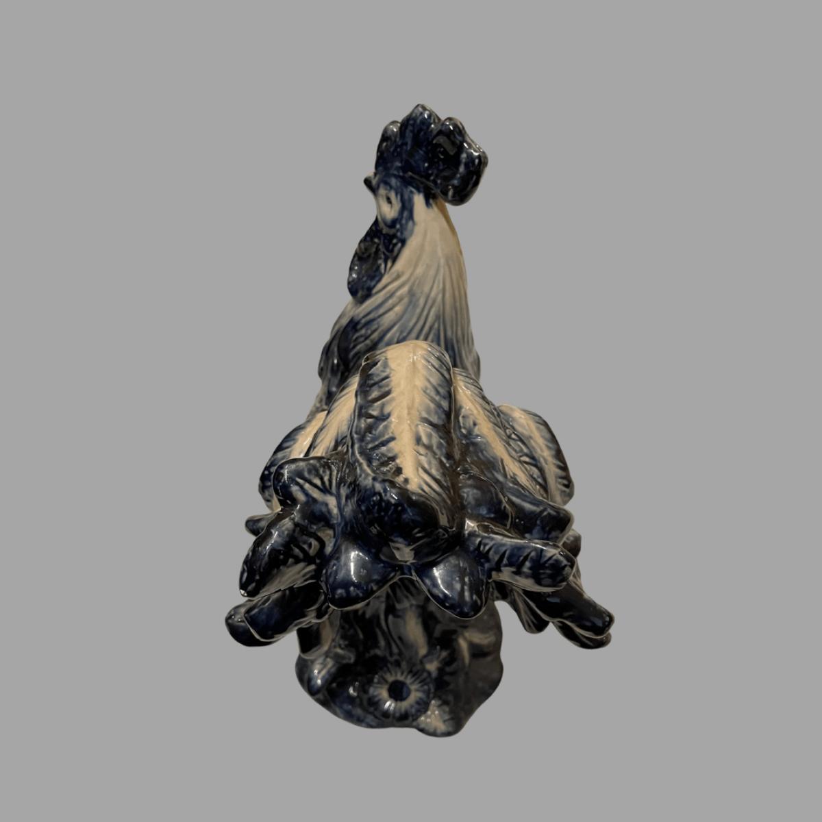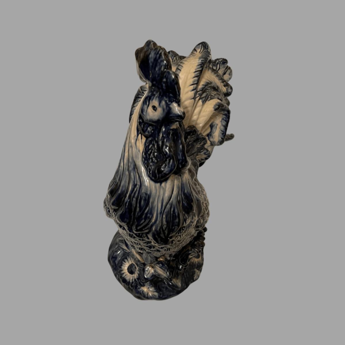 This rooster is awesome. The colors are the perfect blue and white. He measures 19"