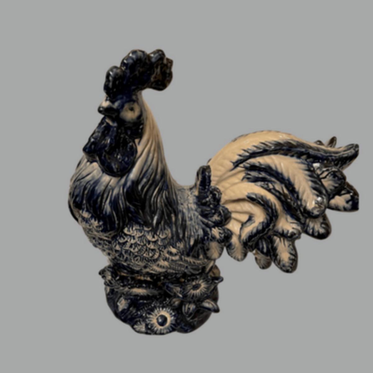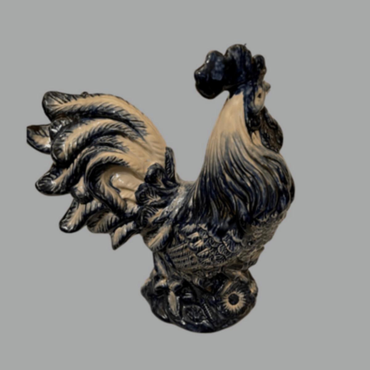 This rooster is awesome. The colors are the perfect blue and white. He measures 19"