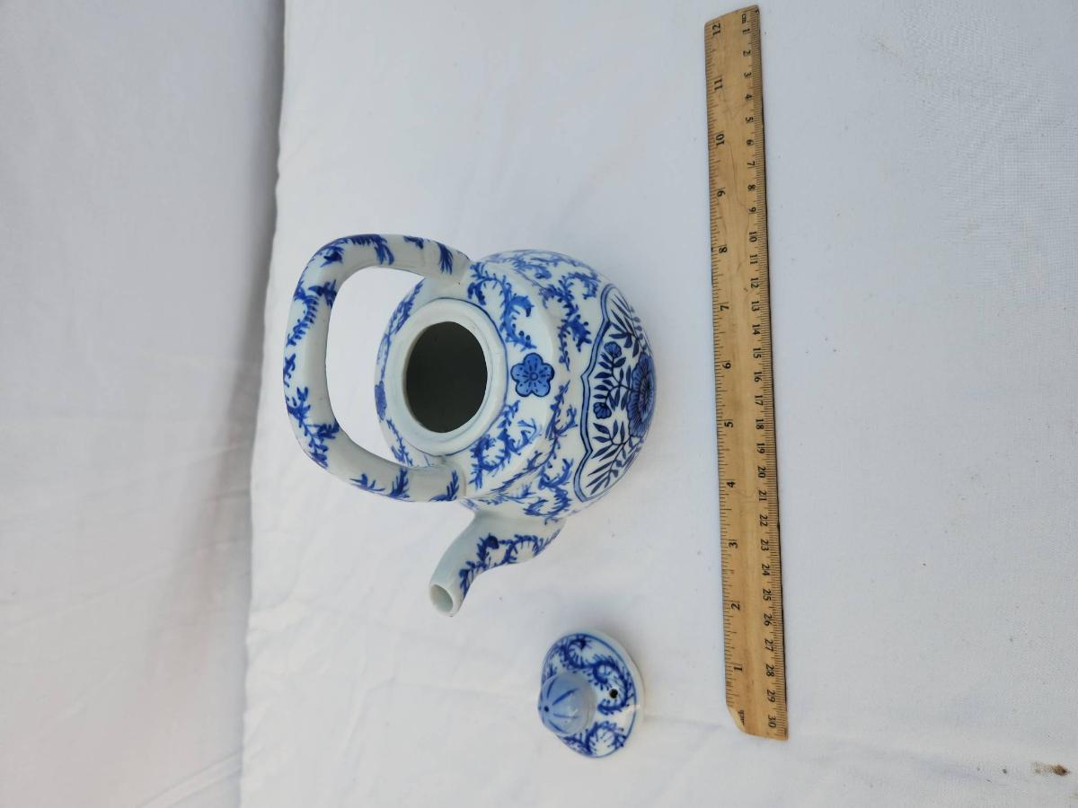 Blue And White Ceramic Teapot With Floral Design, Made in China