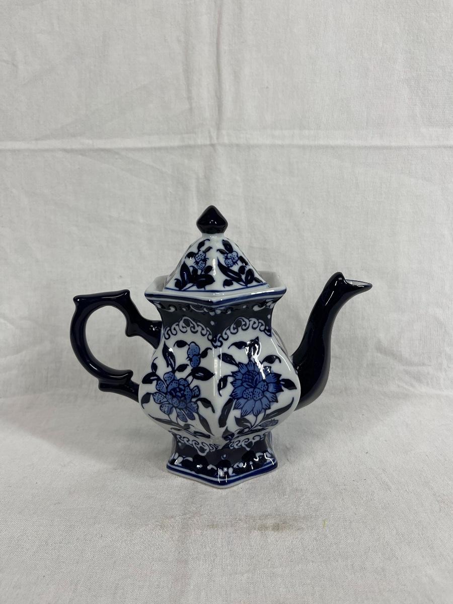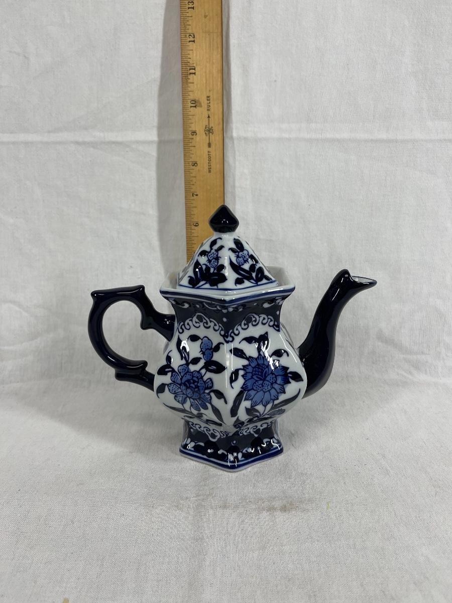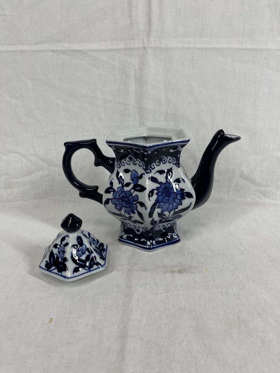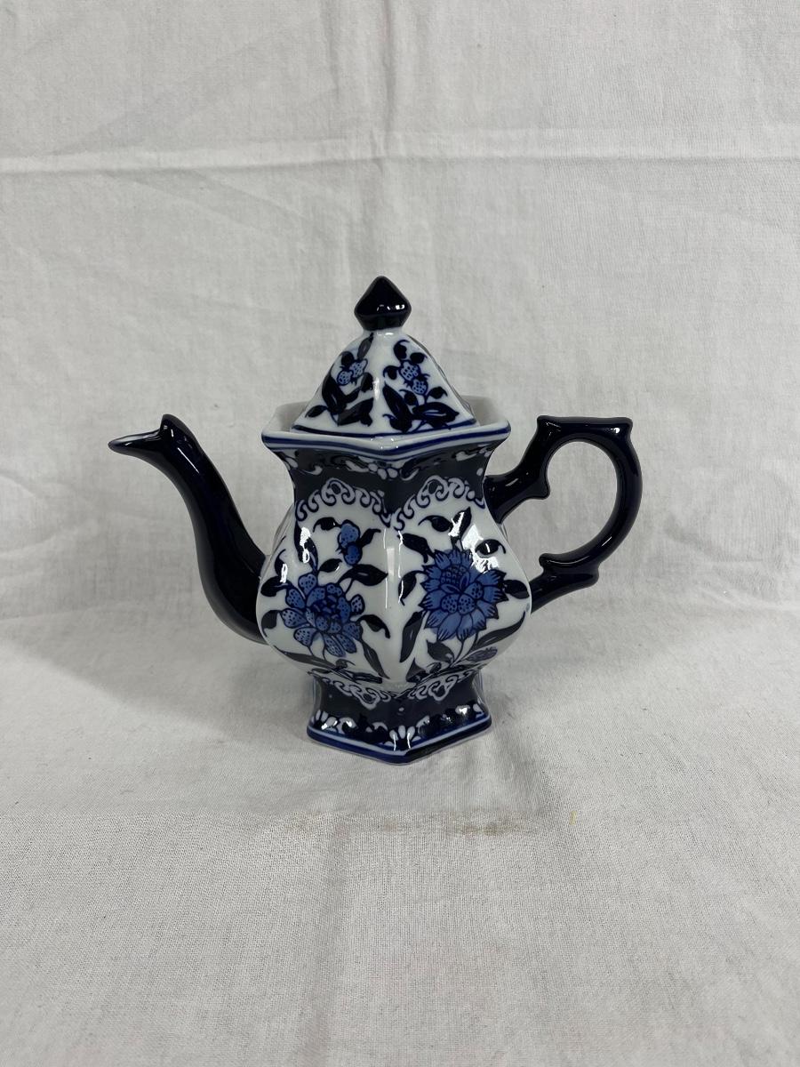 Blue and white Chinese floral print teapot