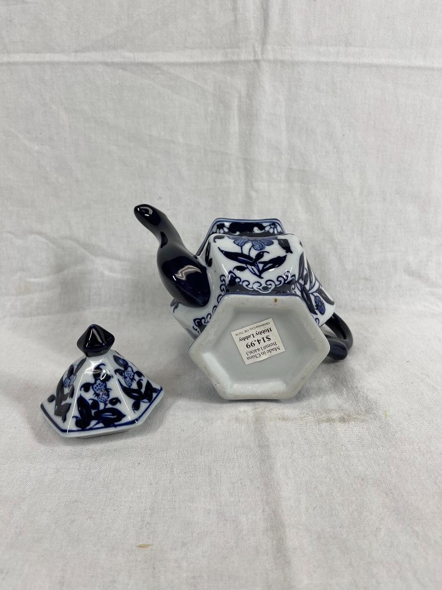 Blue and white Chinese print teapot
