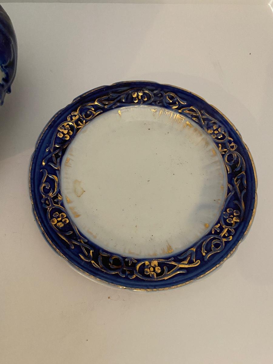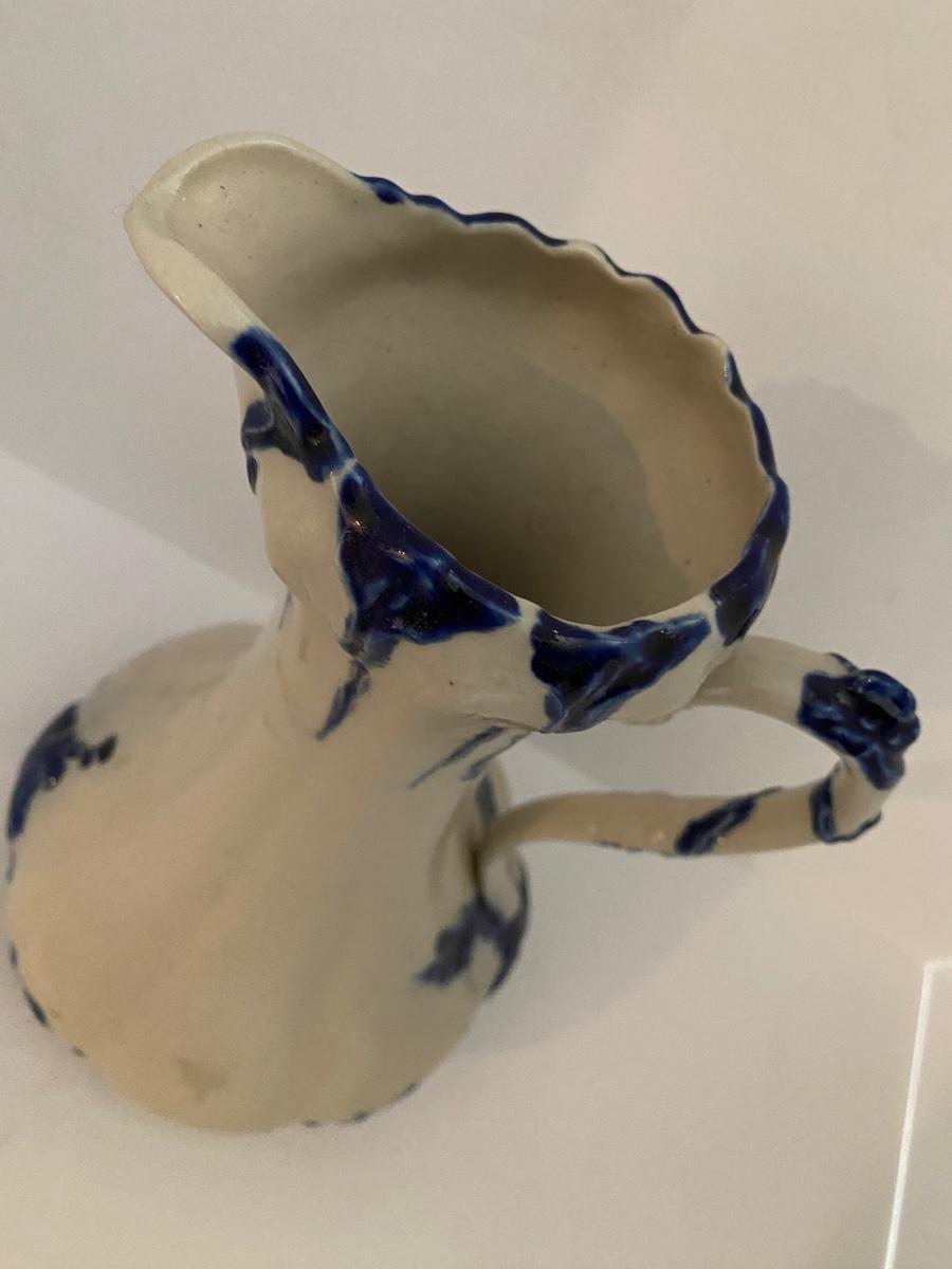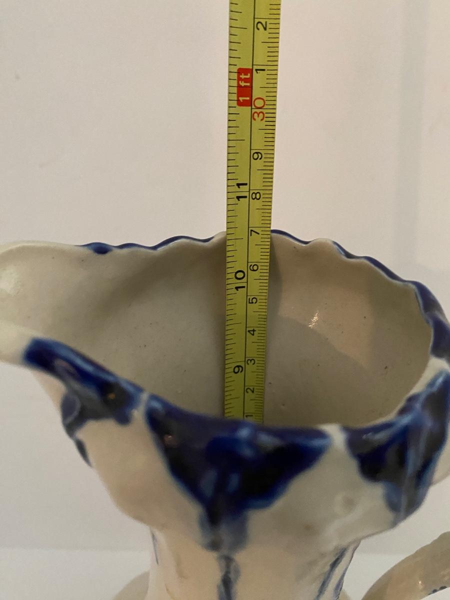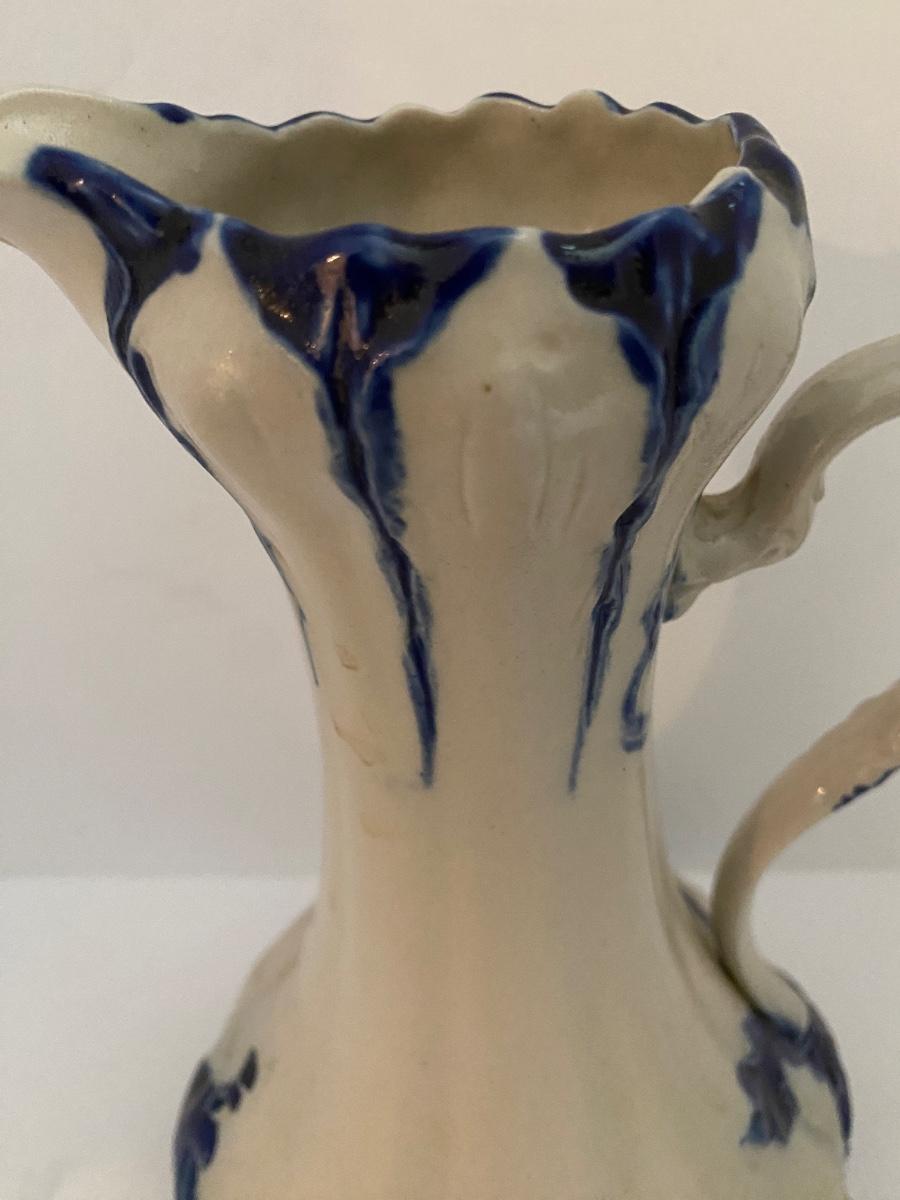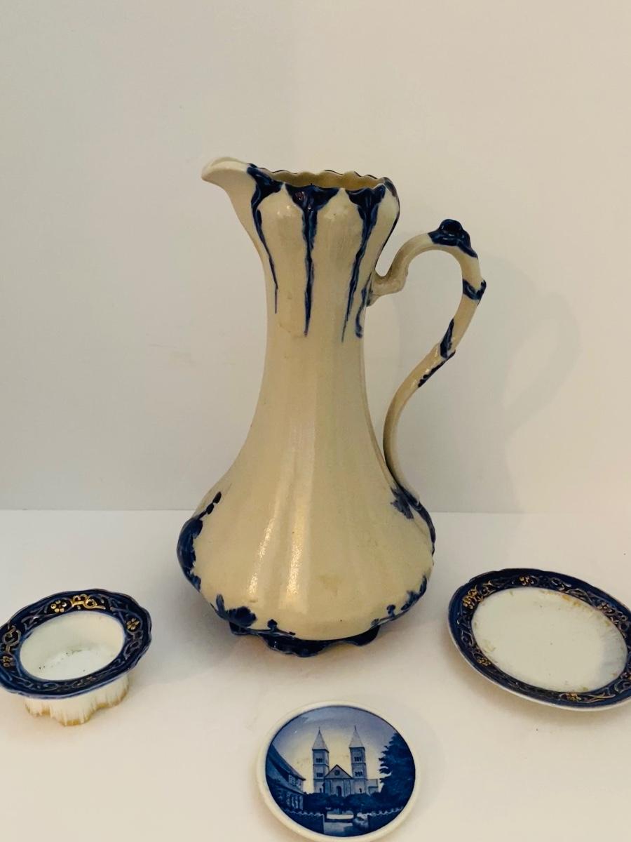 Blue and White Art Déco Stoneware Pitcher10.5" Tall 3 Misc Blue and White Glassware As Pictured