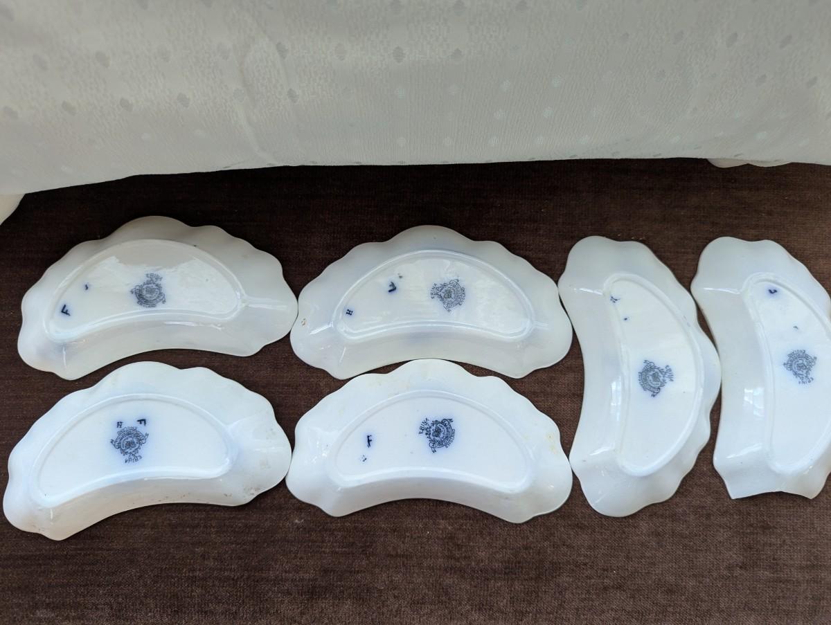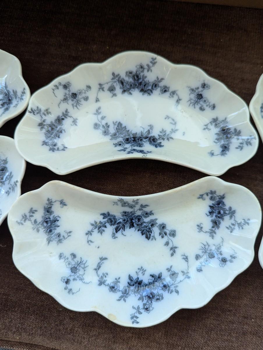 Alfred Meakin Flow Blue Bone Dishes, Set of Six.