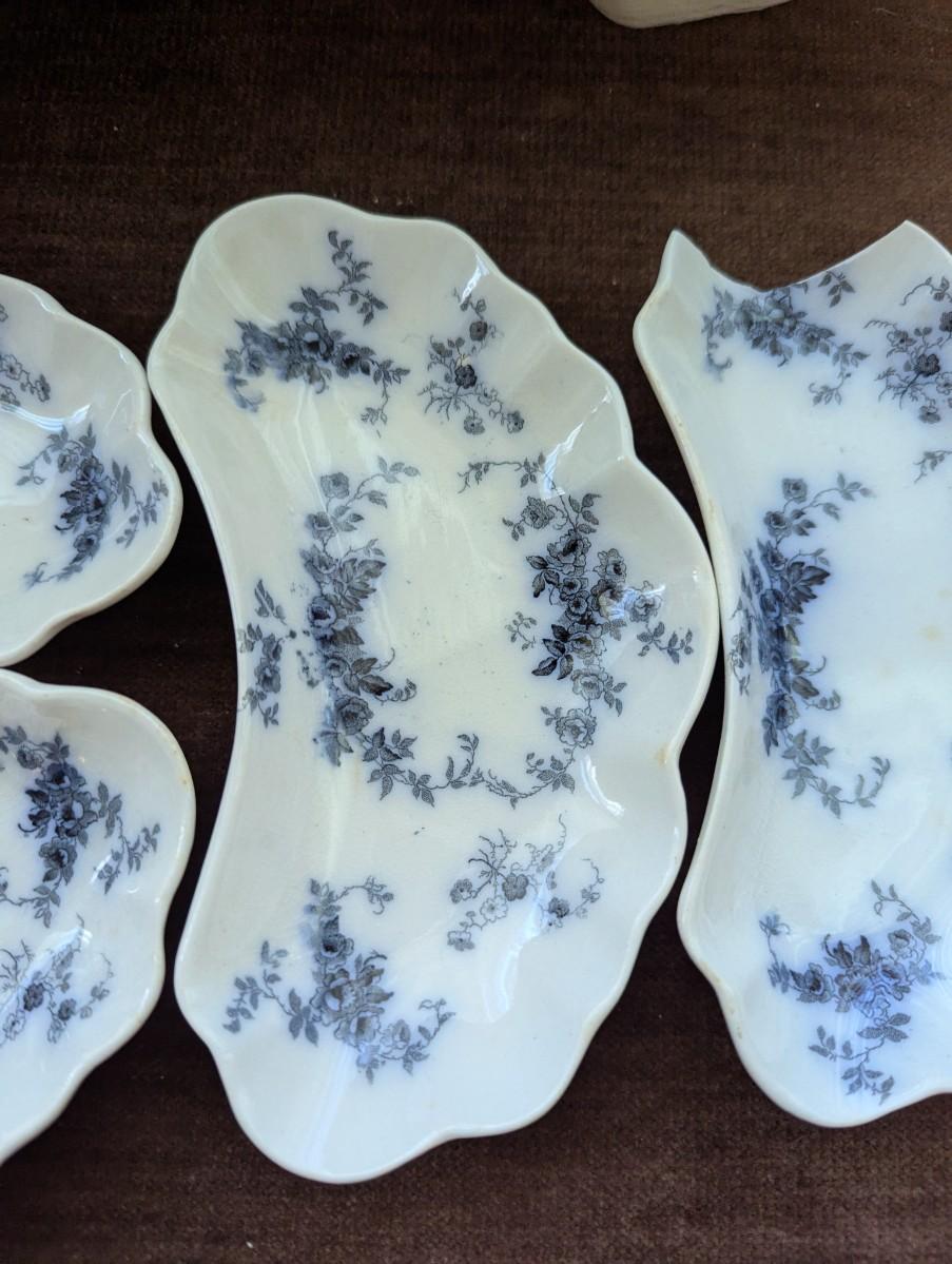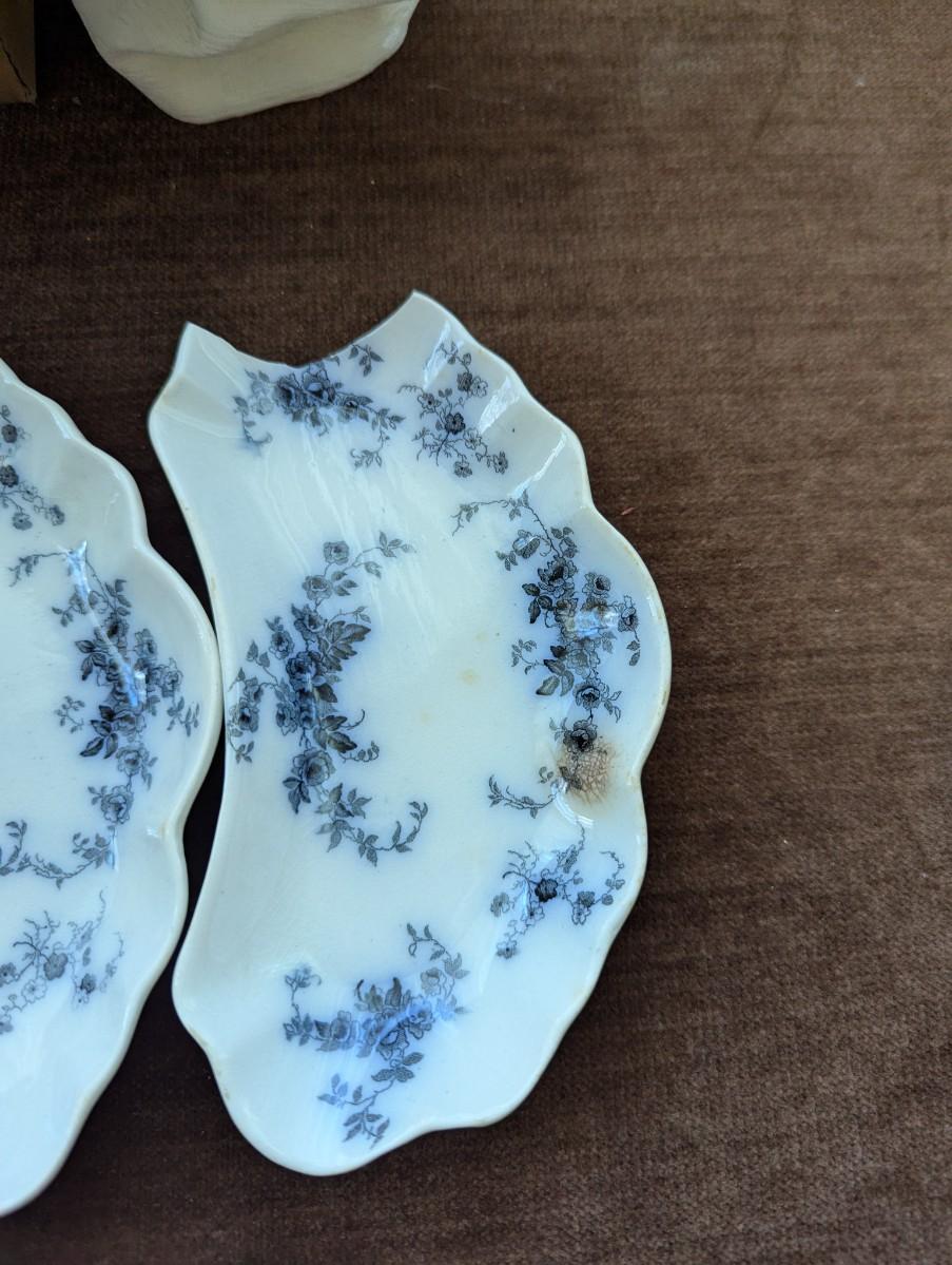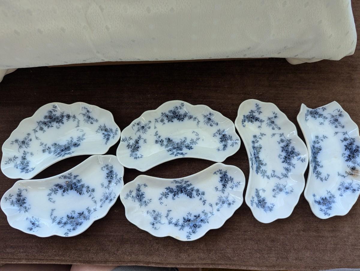 Set of Six (one is broken) Antique Flow Blue Dishes.