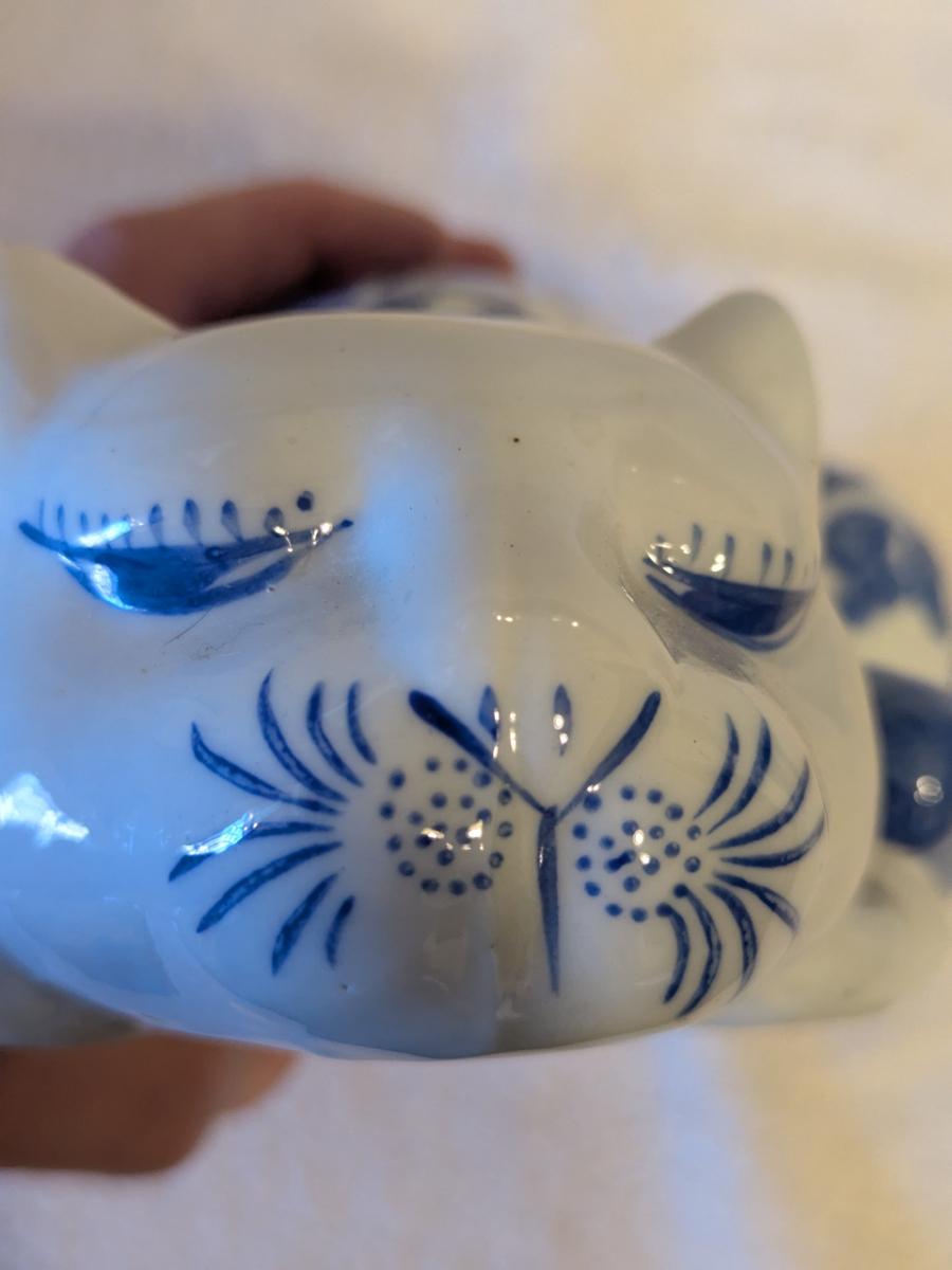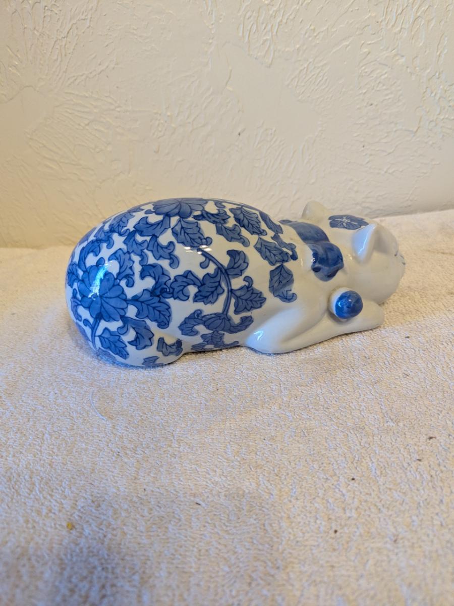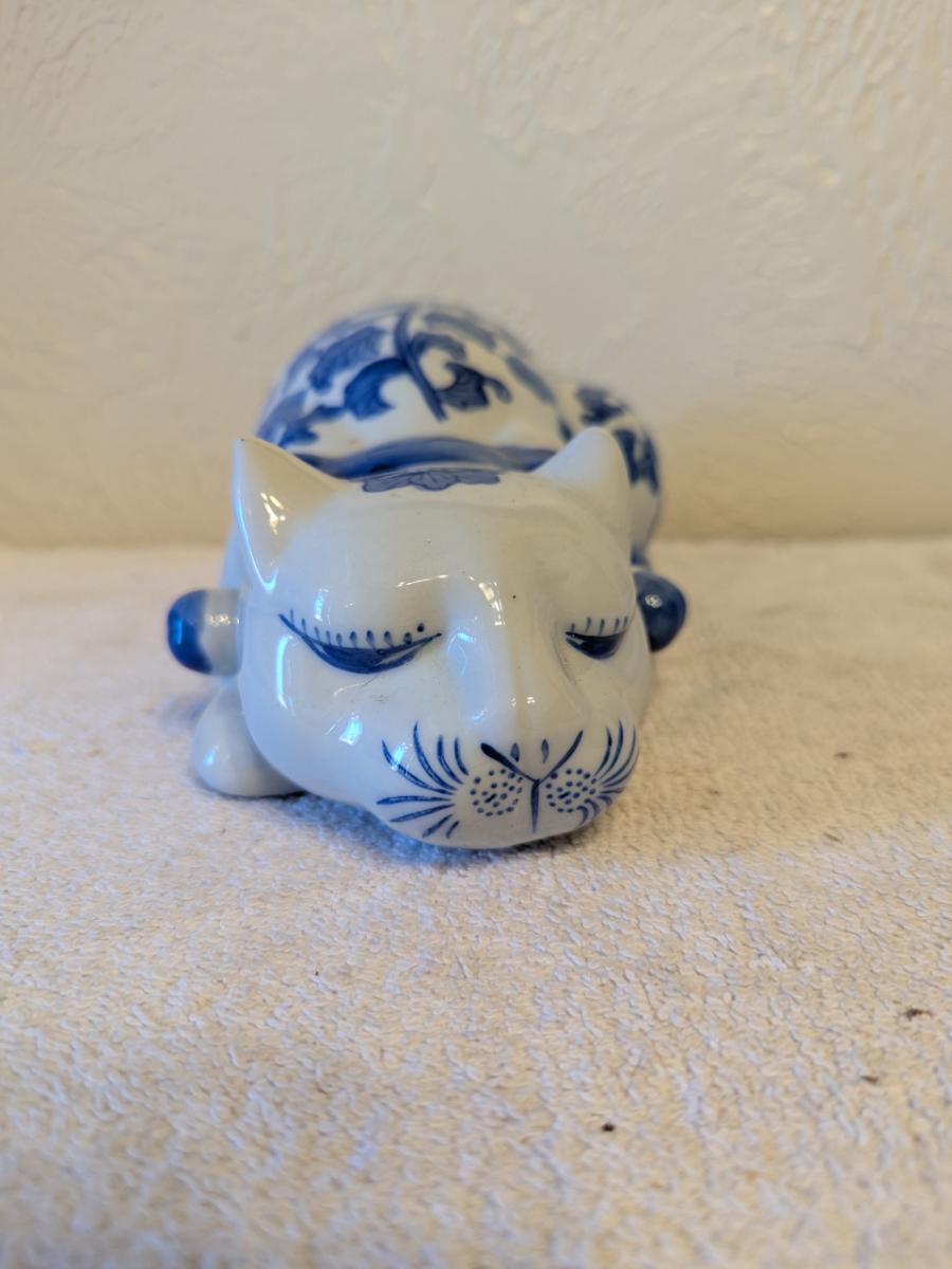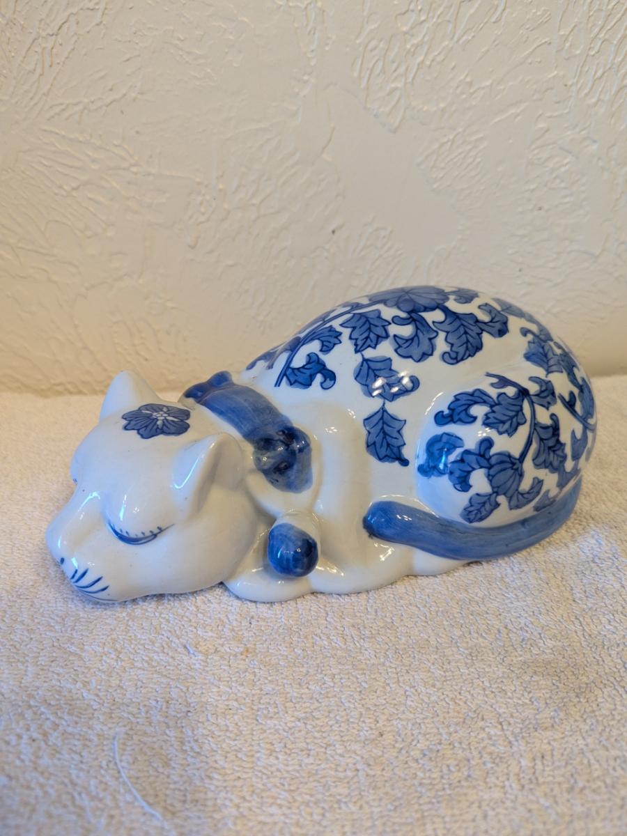blue and white porcelain sleeping cat
