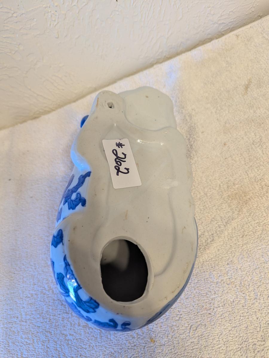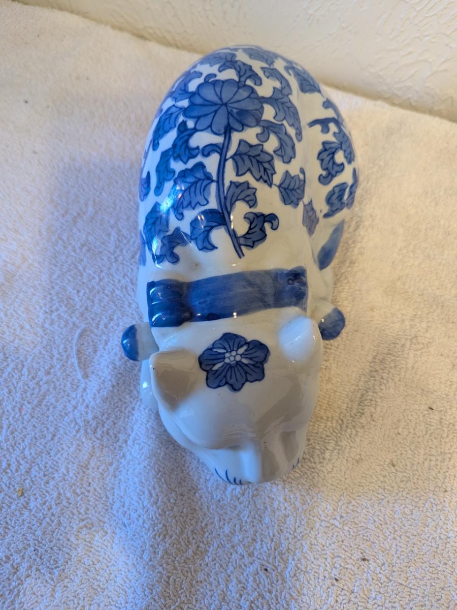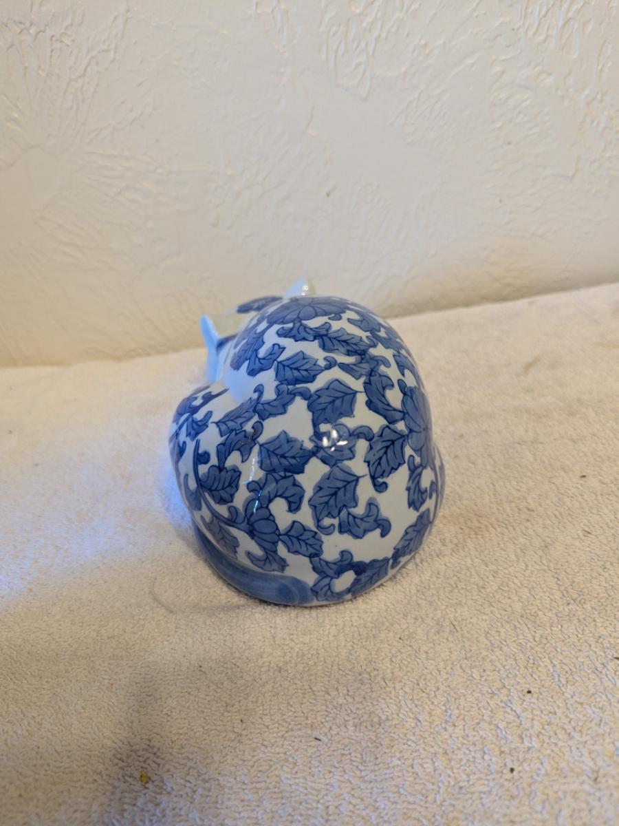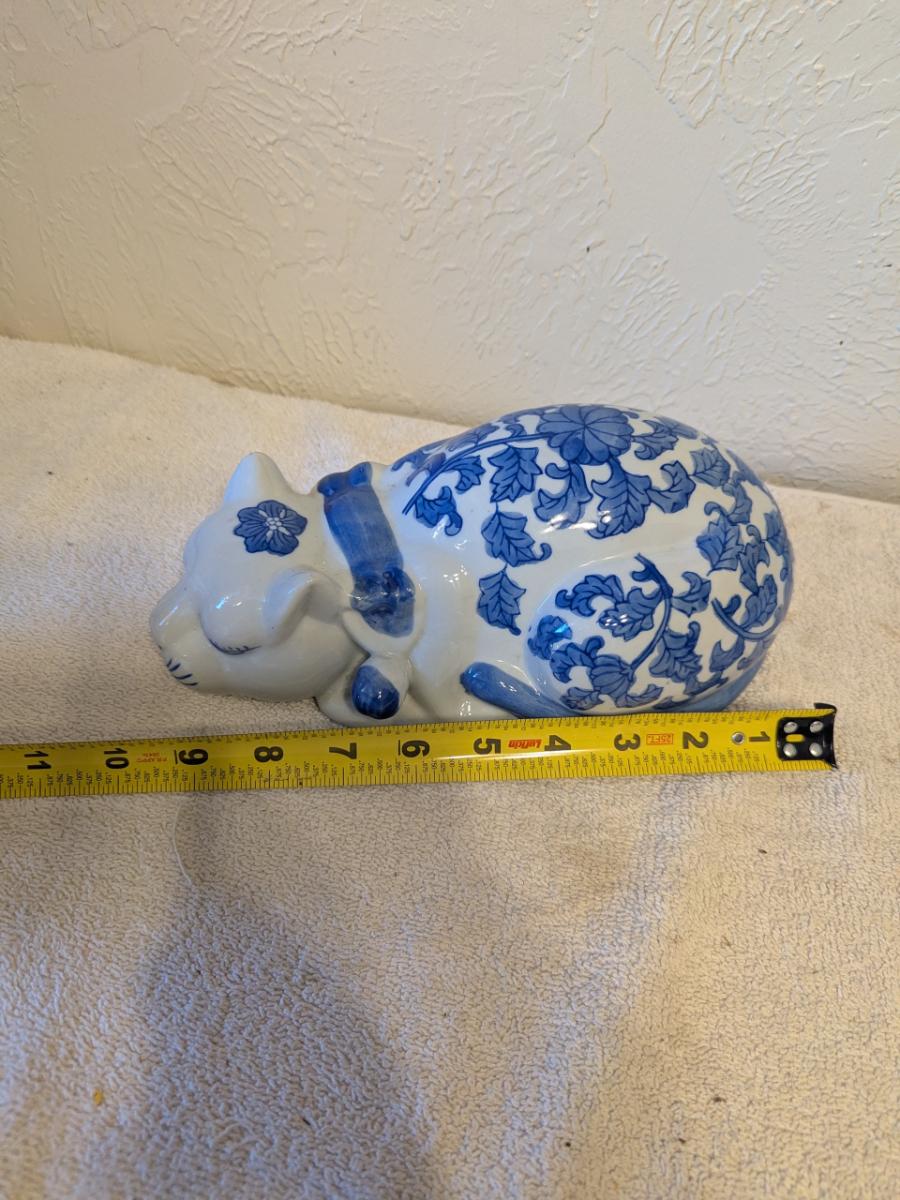 blue and white porcelain sleeping cat