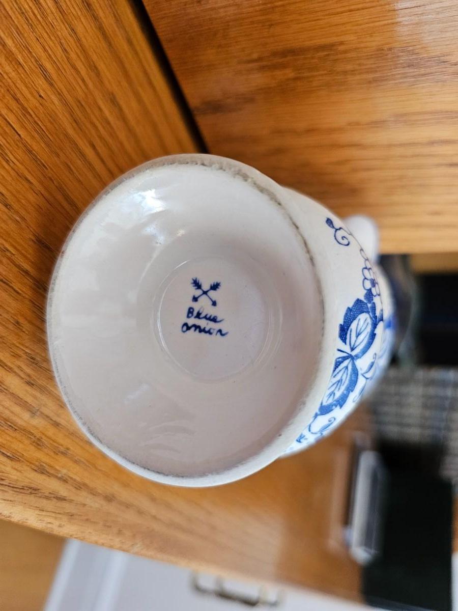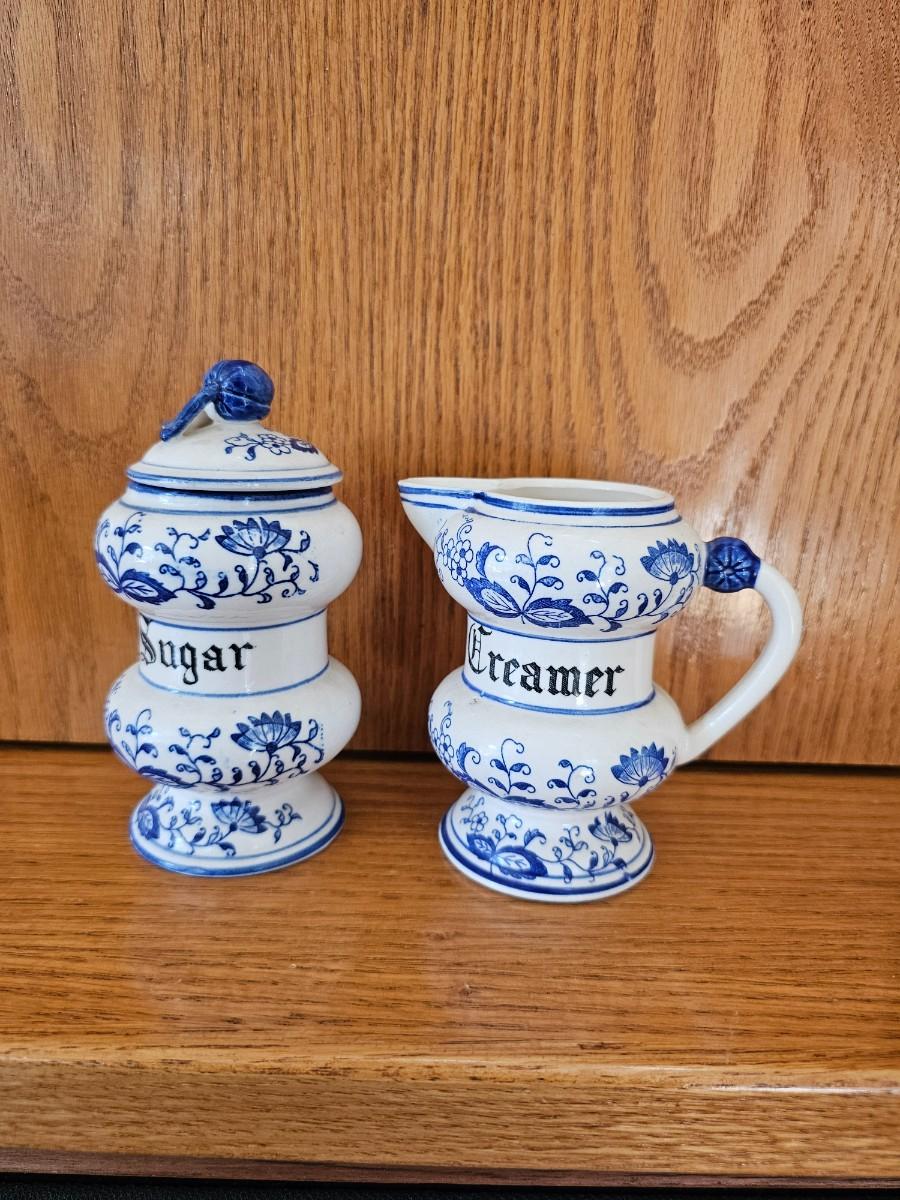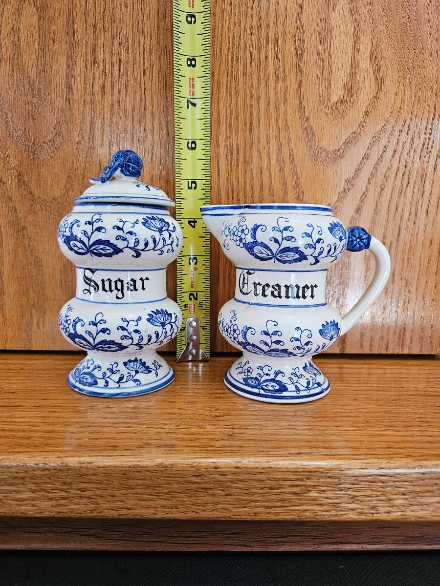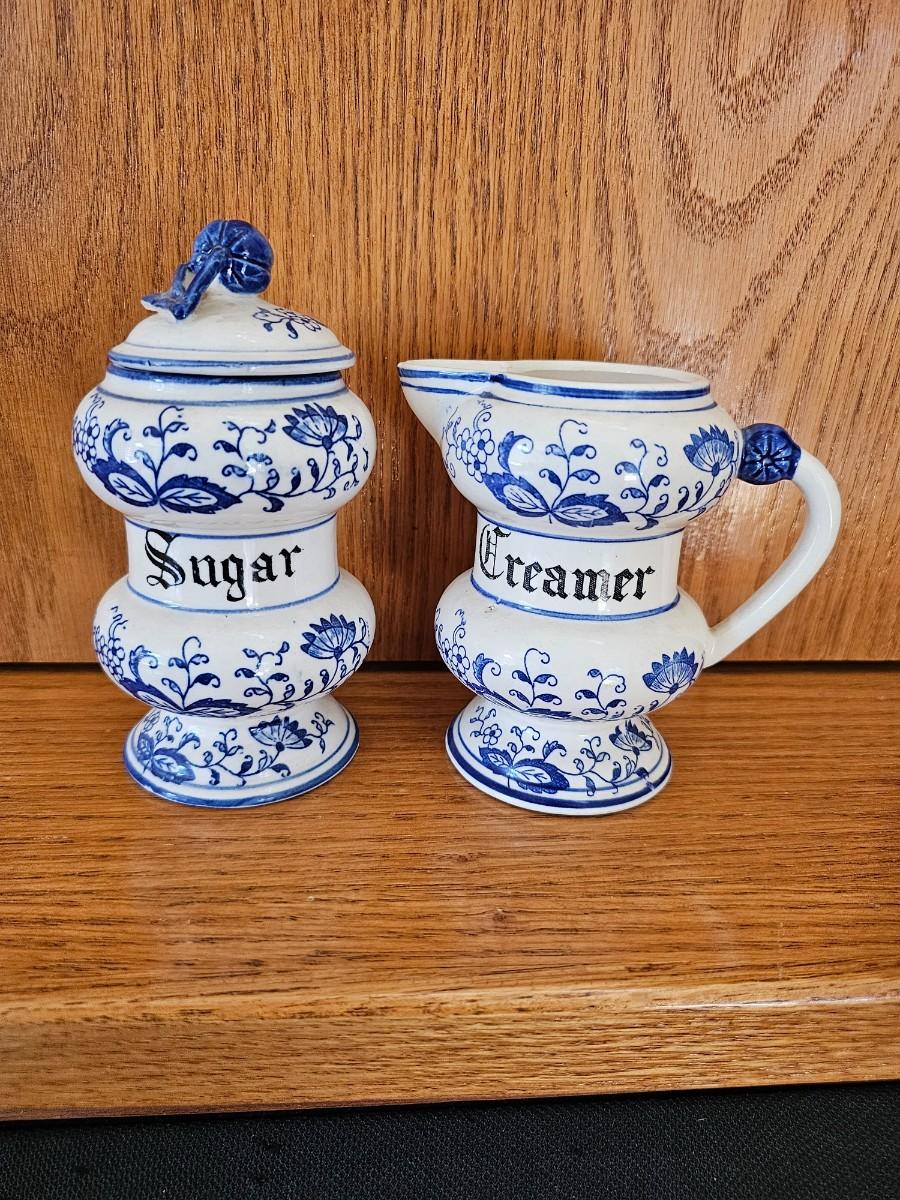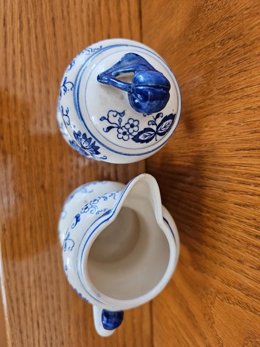 Blue And white sugar bowl and creamer