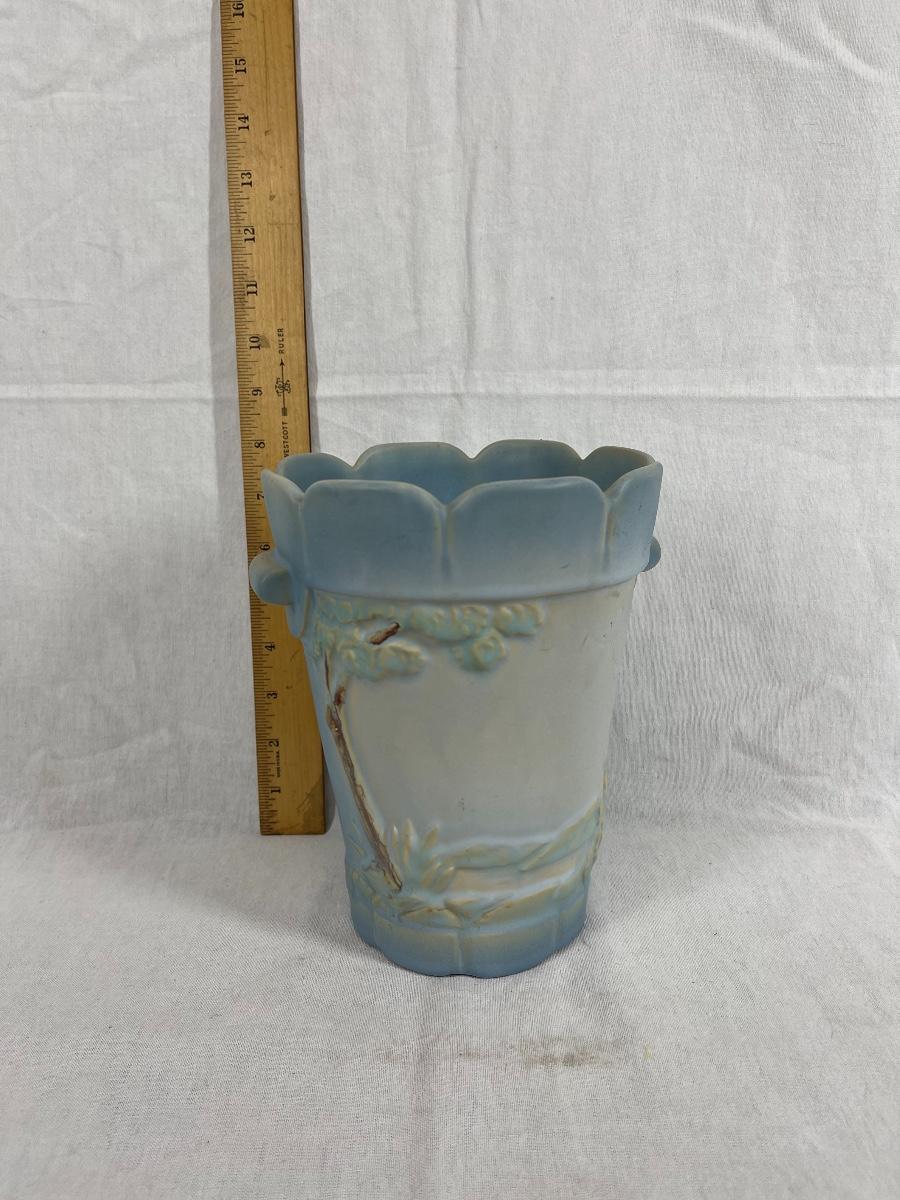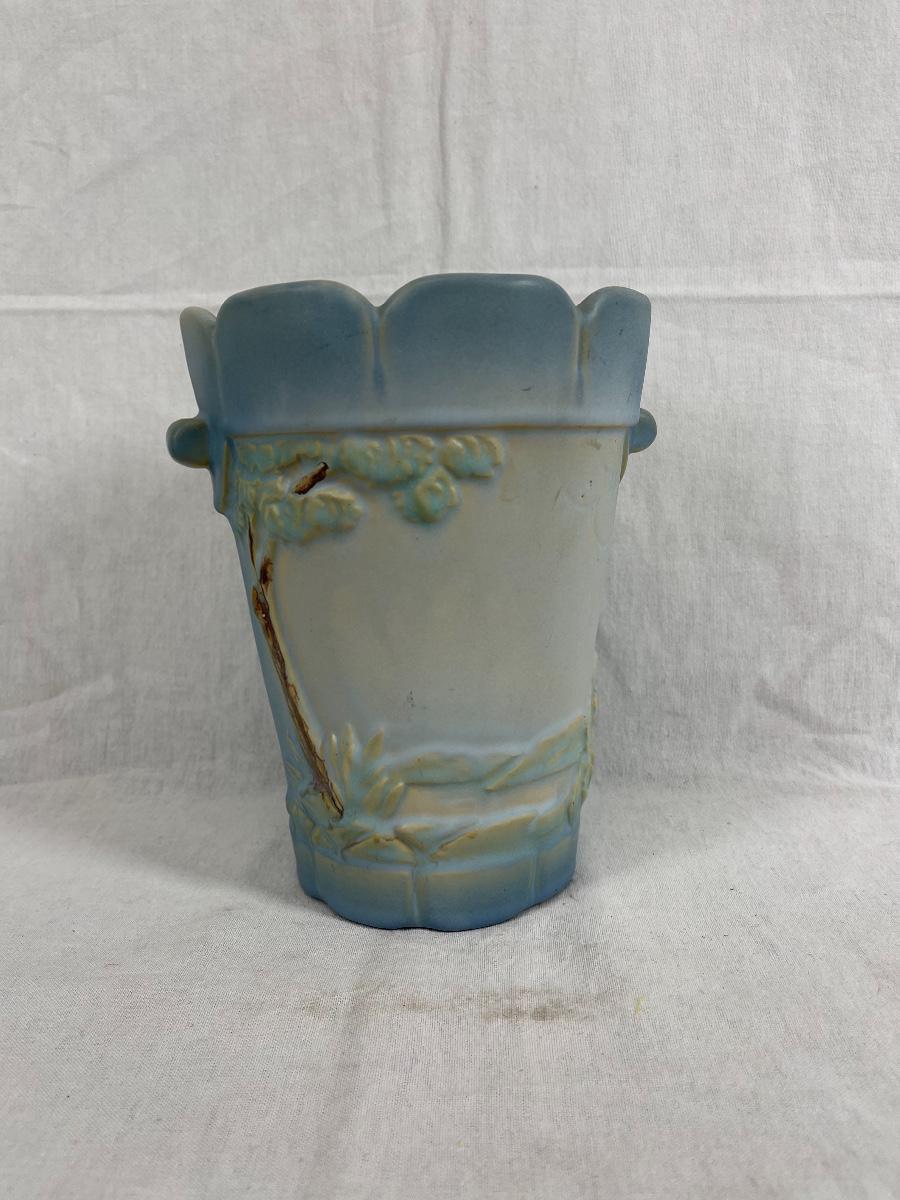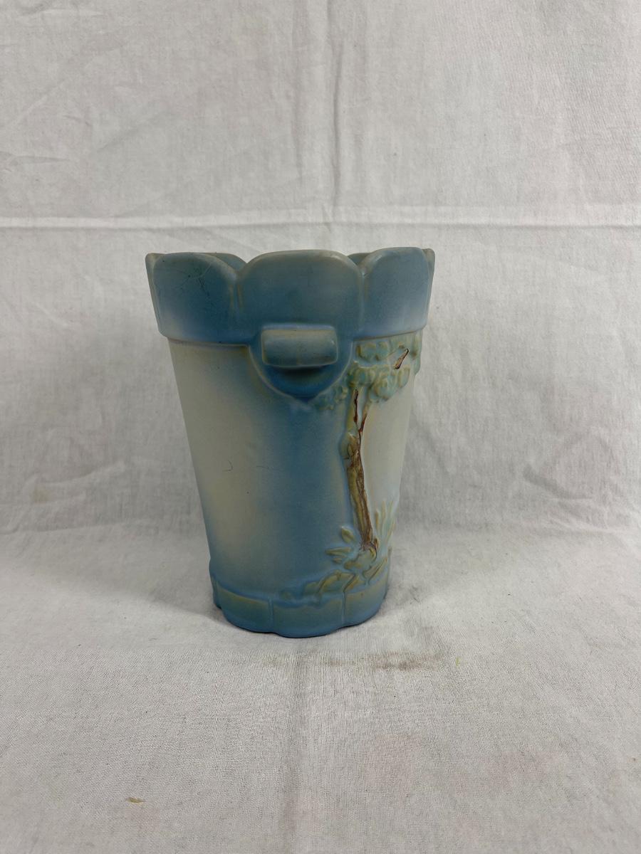 Weller Pottery Blue and white Bucket Shaped tree vase pot