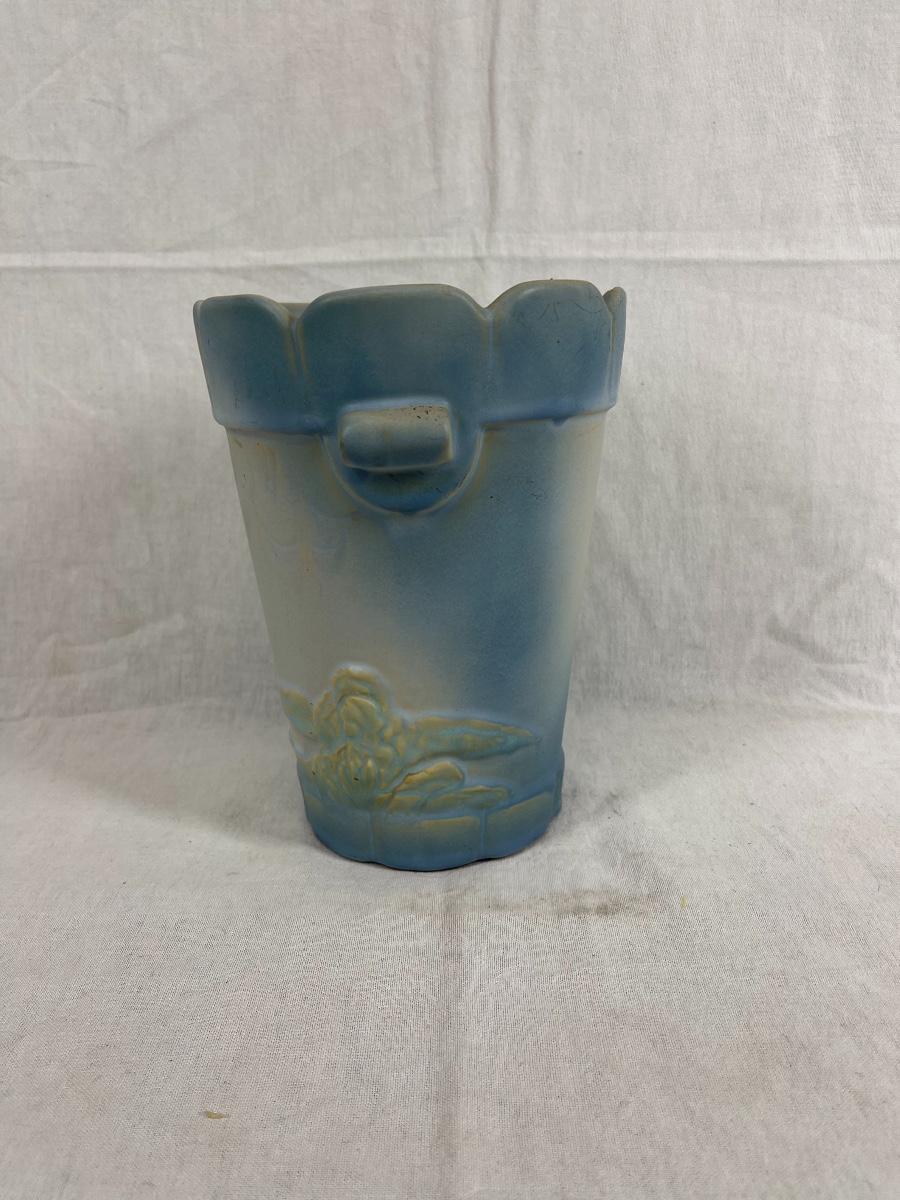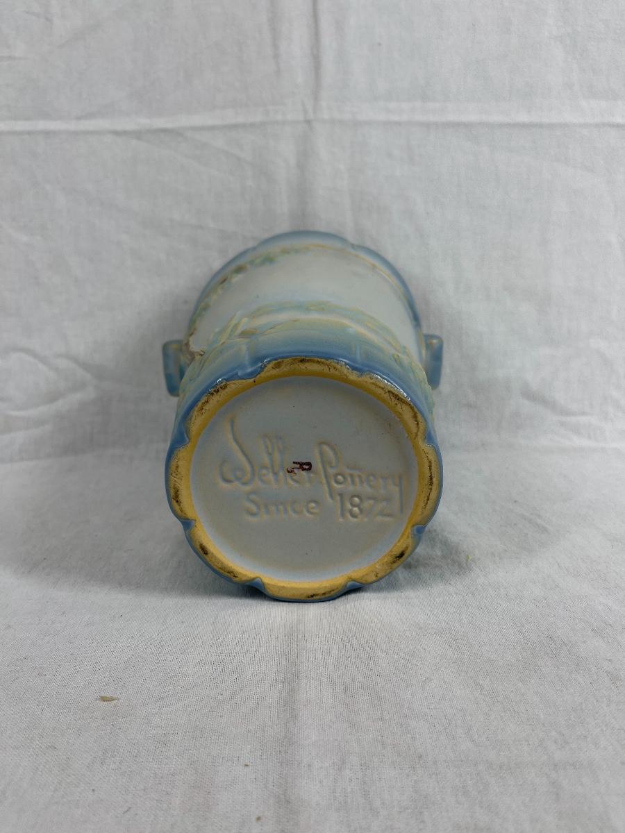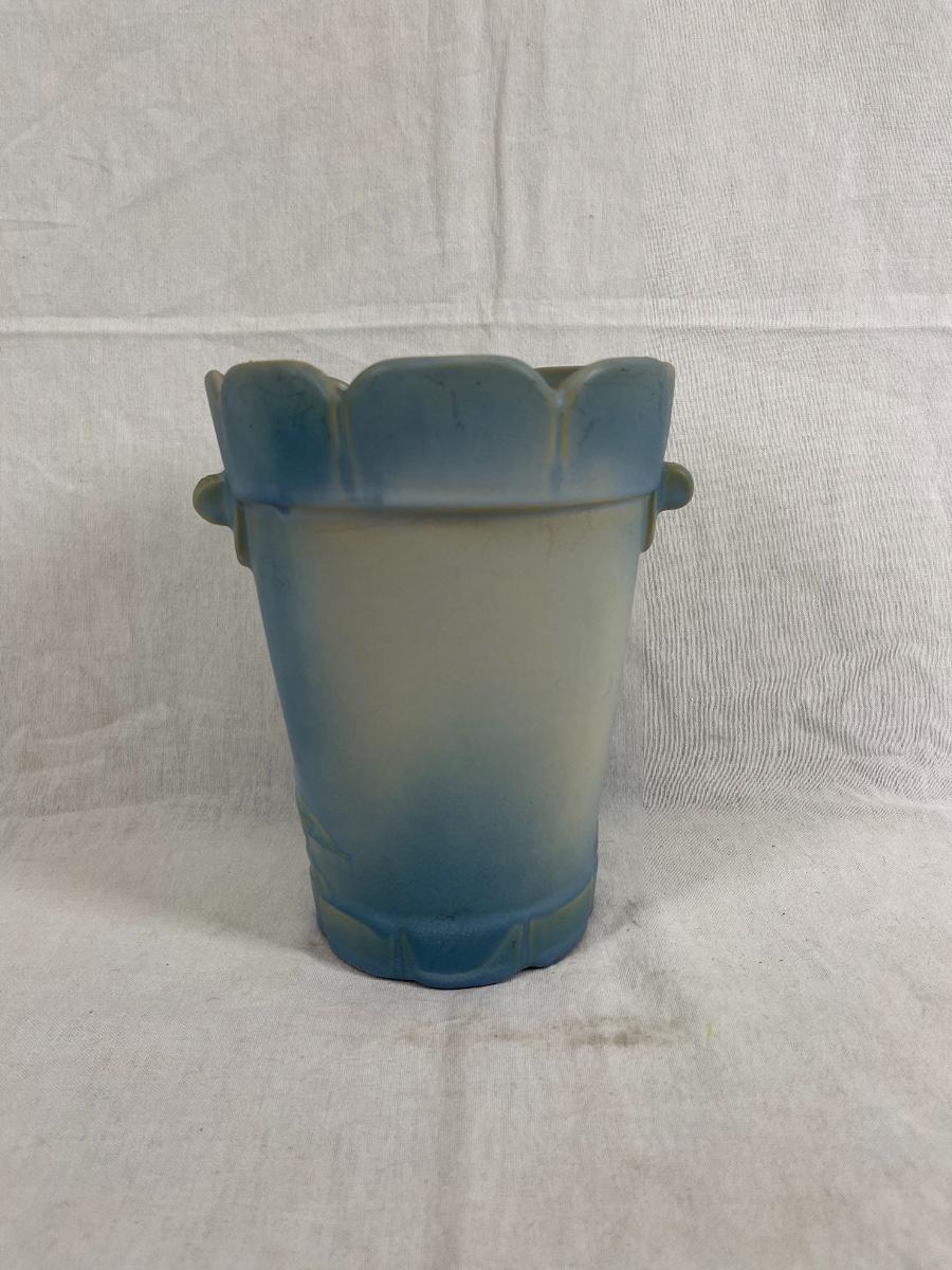 Weller Pottery blue and white bucket shaped planter pot. In good vintage condition.