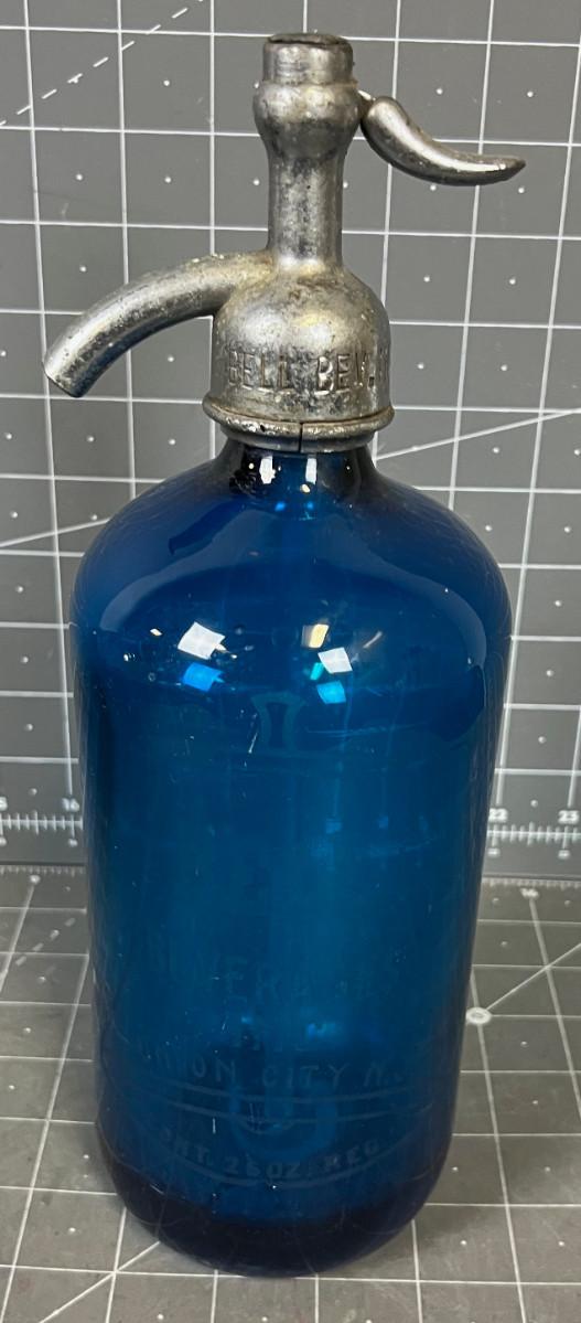BLUE Antique Seltzer Bottle "Bell Beverages"