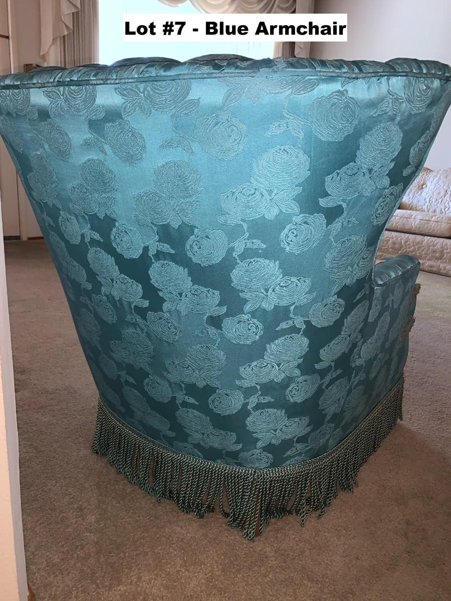 French Style Tufted Armchair with Bullion Fringe Skirt