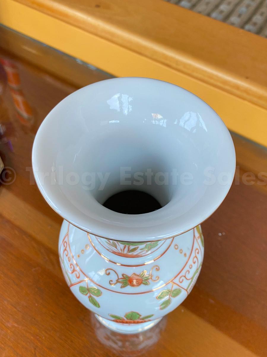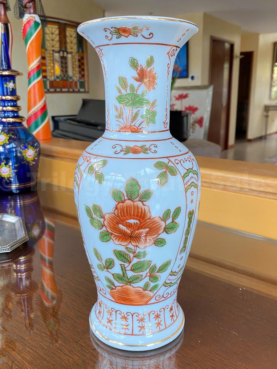 Blue Asian vase with orange flowers