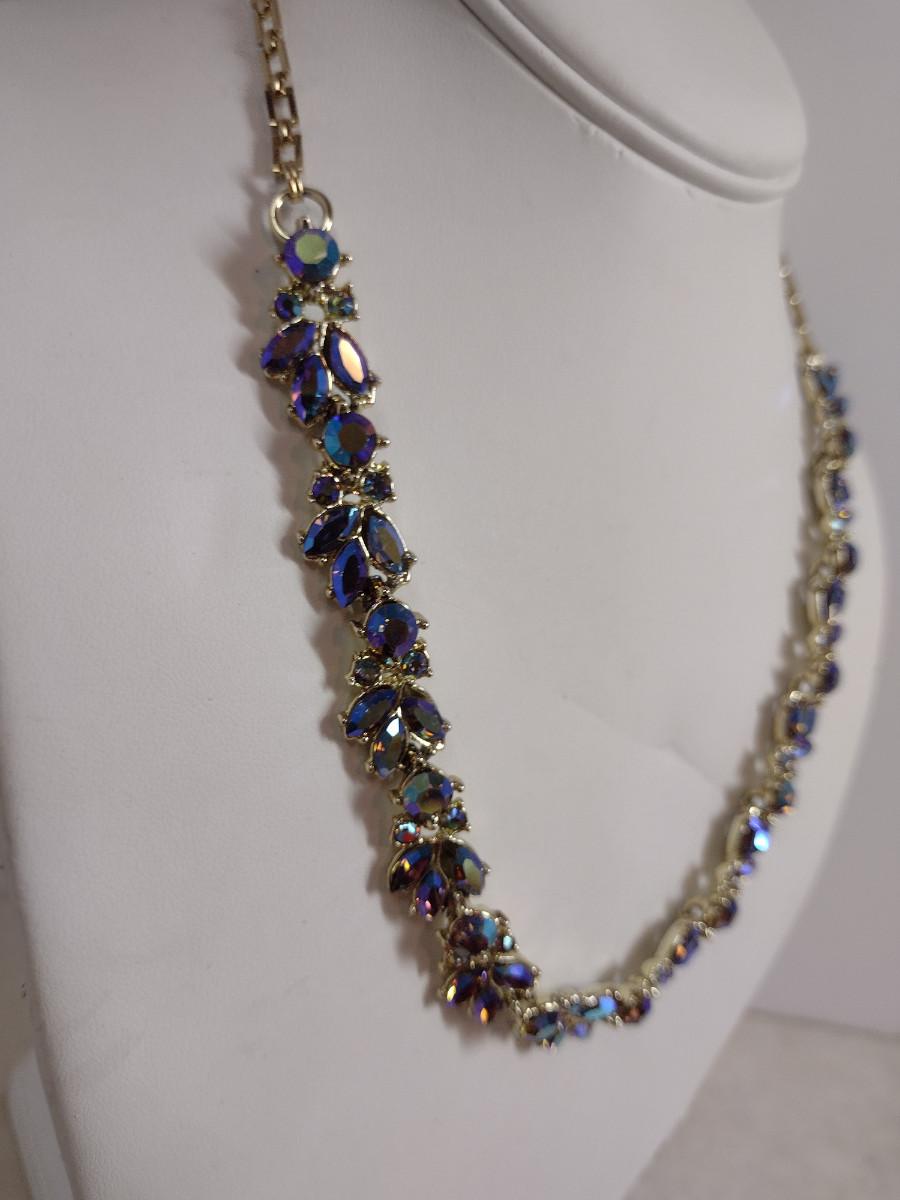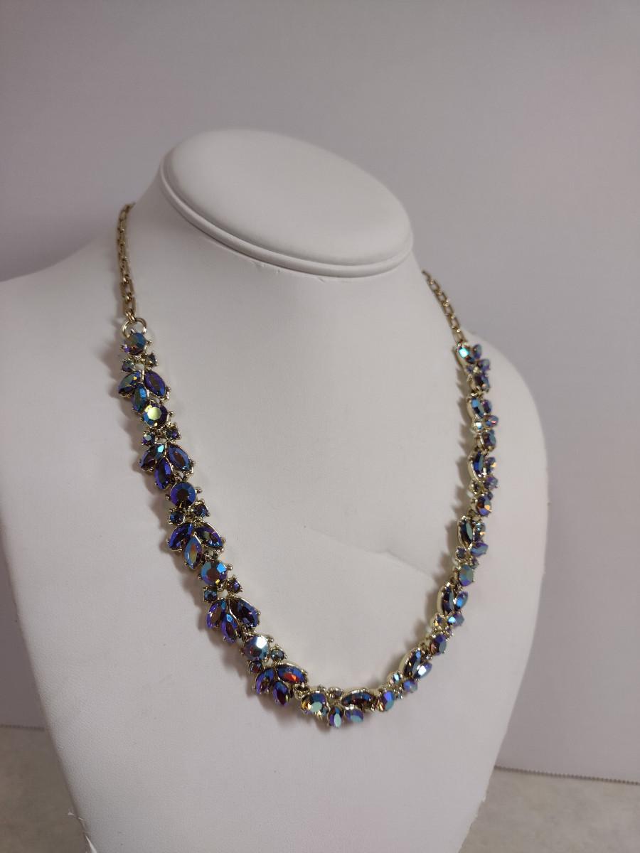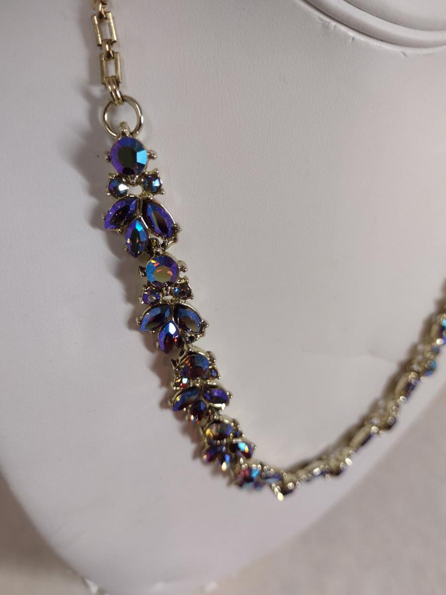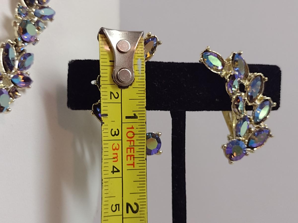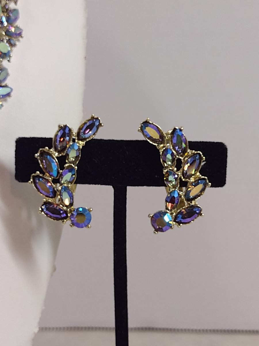 Blue Aurora Borealis Necklace and Earring Set (#26). Necklace is approx 20" long. Earrings are clip-on.