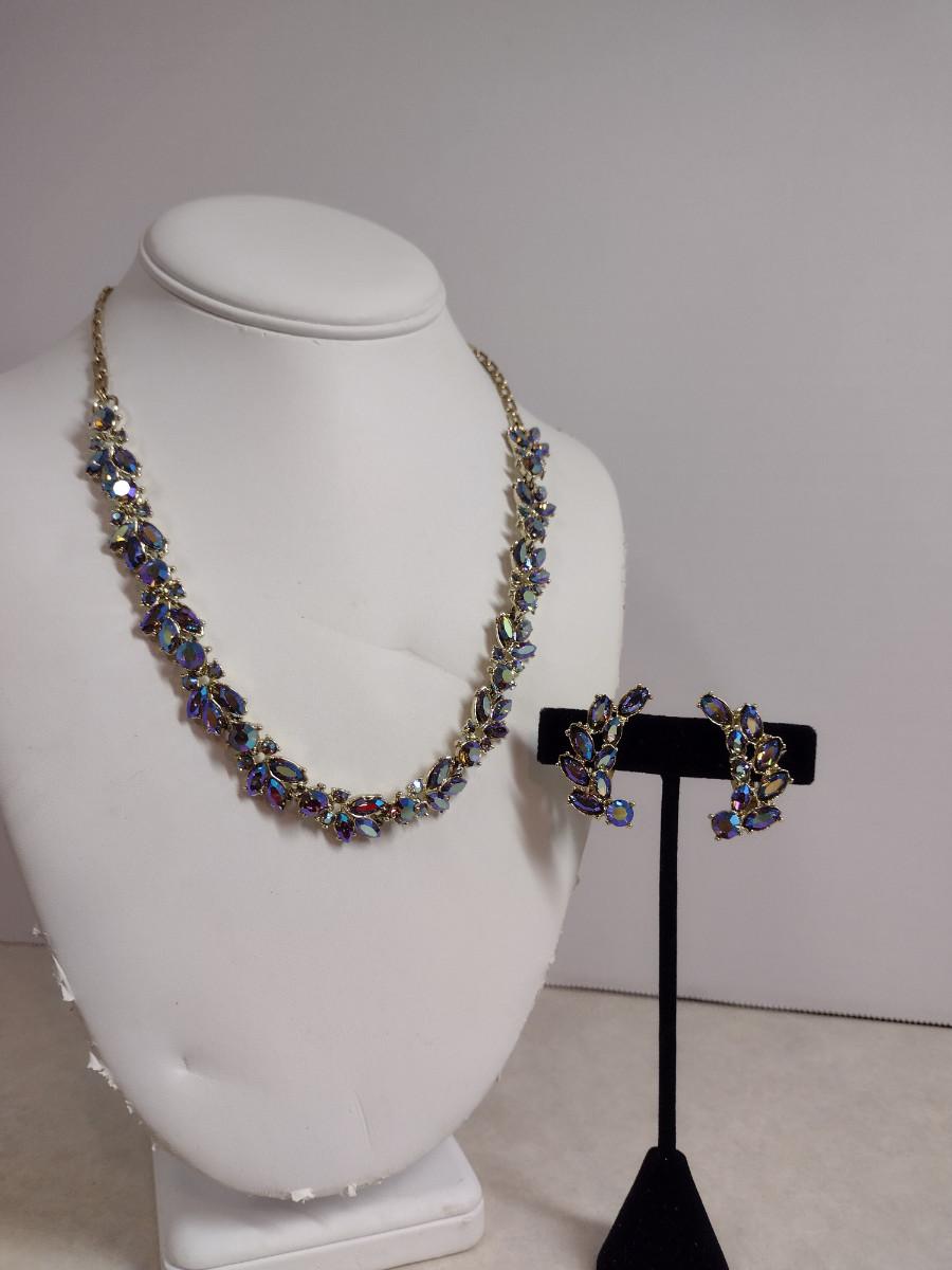 Blue Aurora Borealis Necklace and Earring Set (#26)