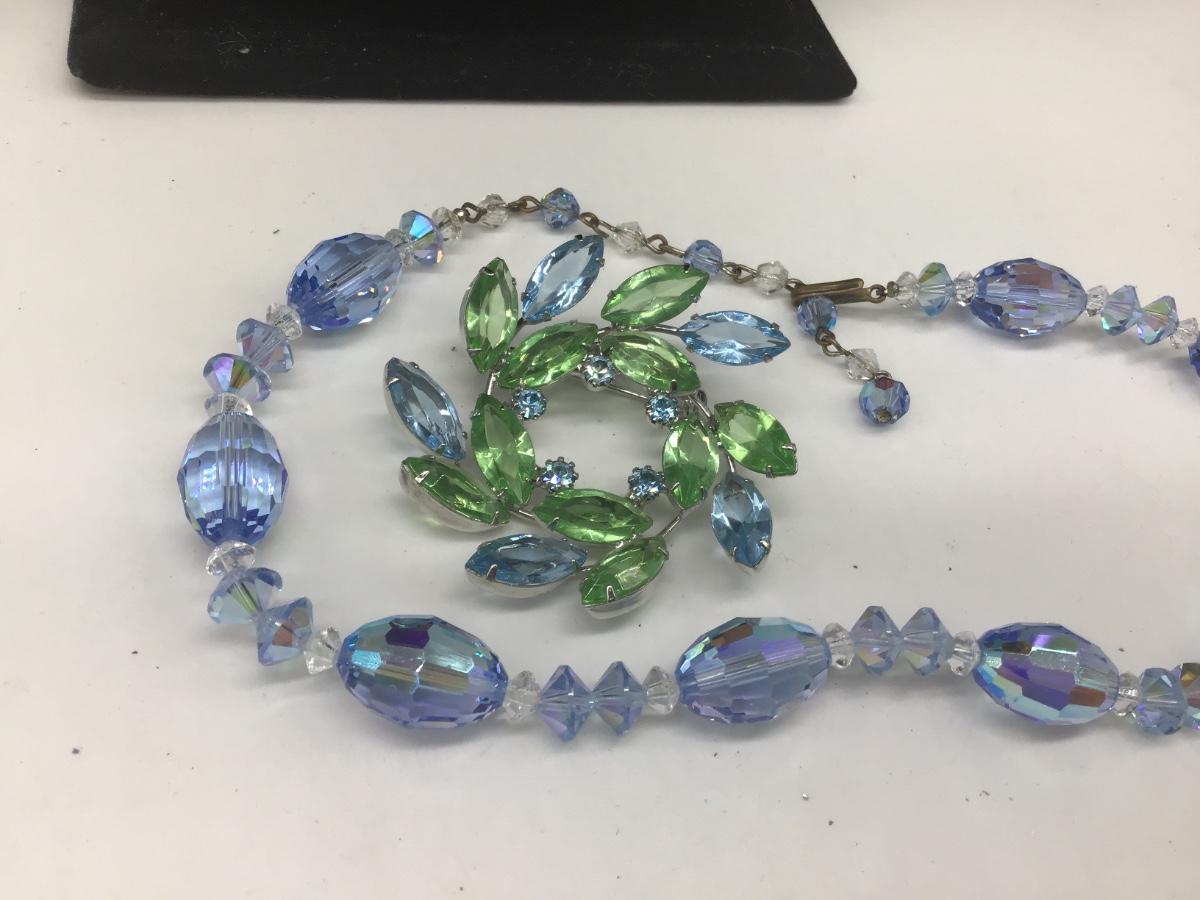 Blue Aurora Borealis Necklace and Beautiful Brooch