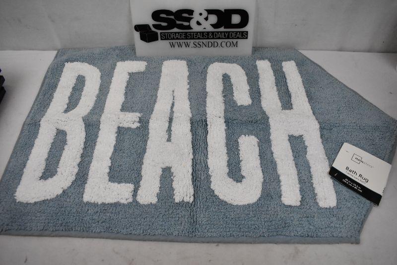Blue "Beach" Bath Rug Catching Rays Tufted Cotton Washable 20"x33" - New