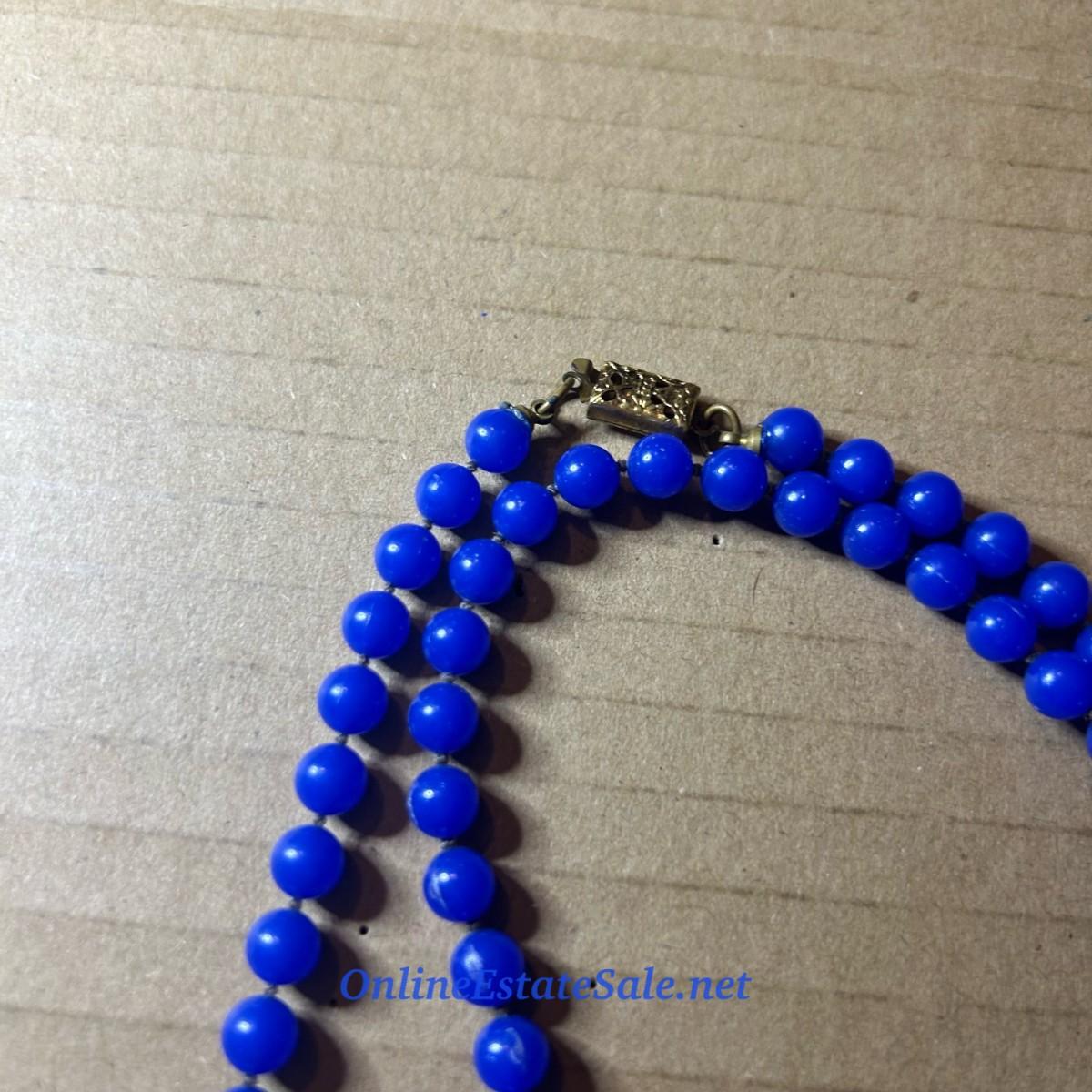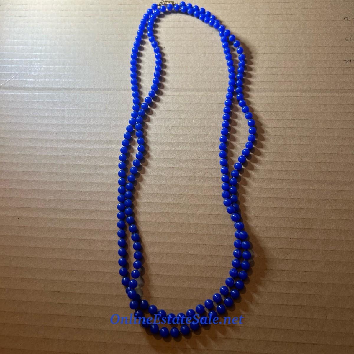 48in Blue Beaded Necklace with Decorative Box Clasp