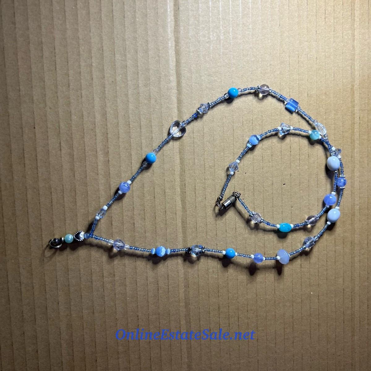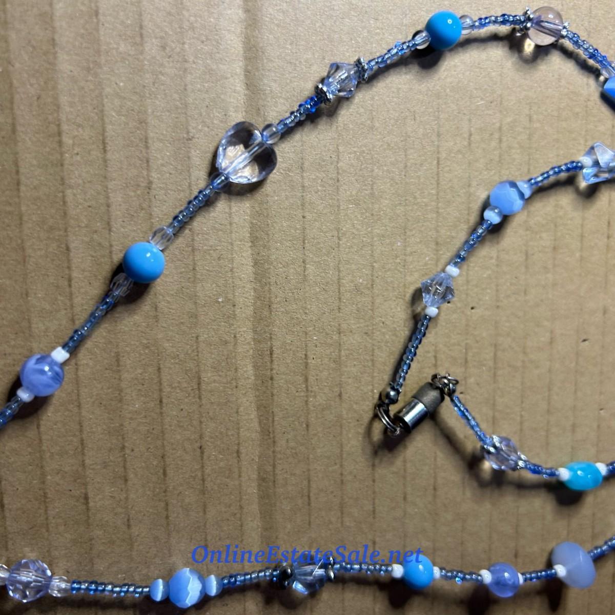 30in Blue and Clear Beaded Necklace with Magnet Clasp