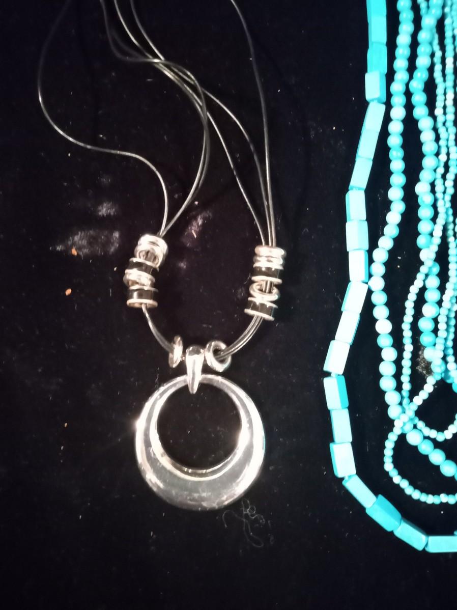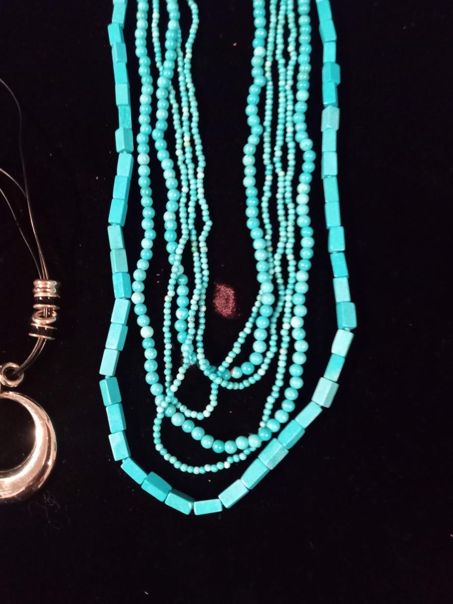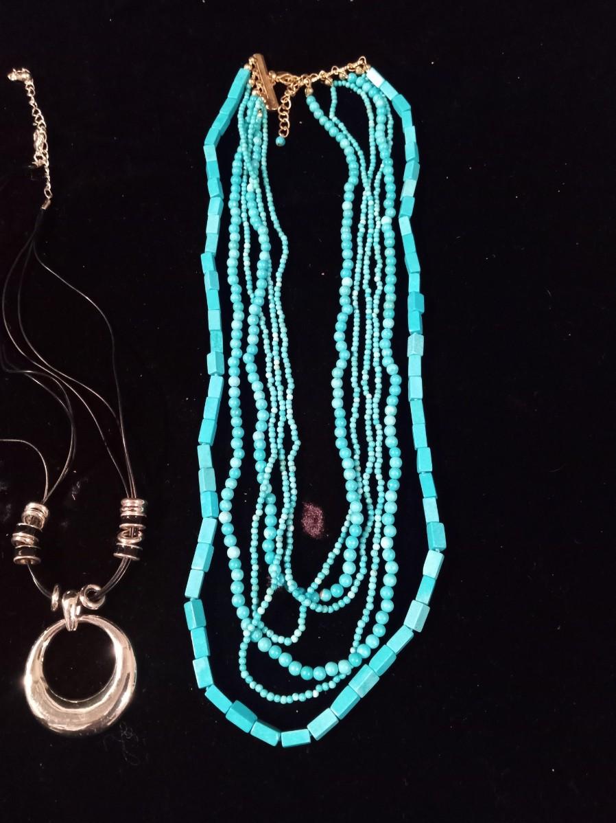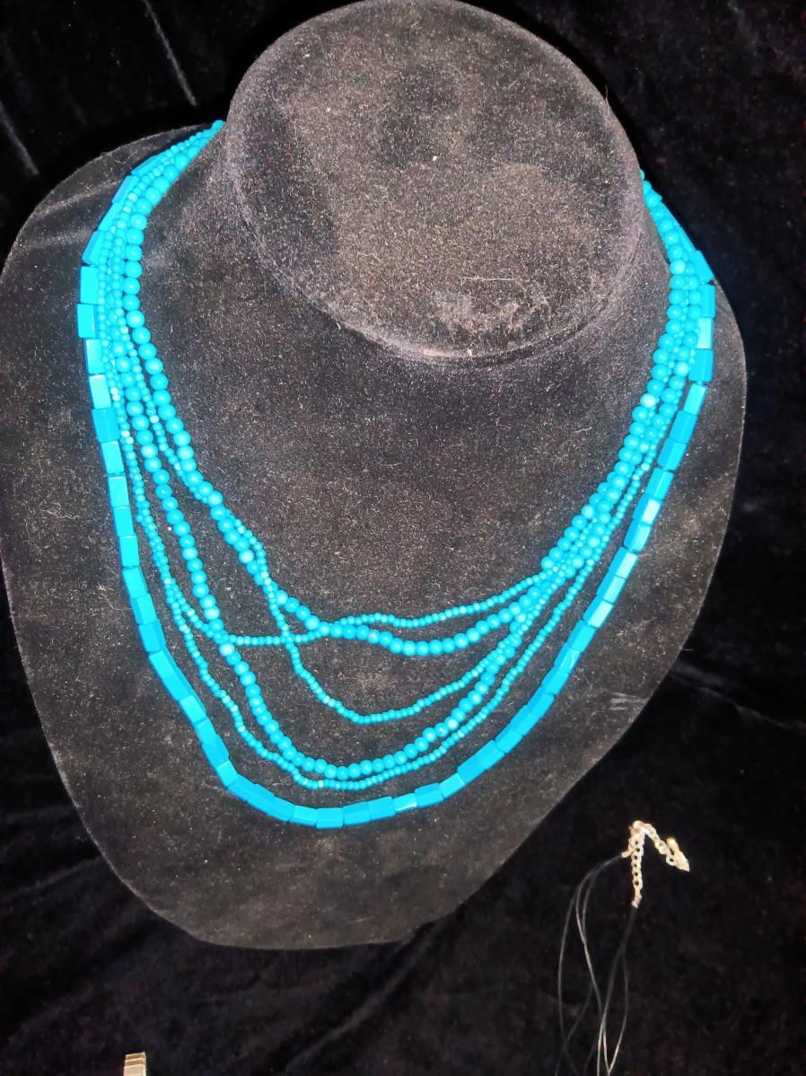 BLUE BEADED NECKLACE WOMEN'S WRIST WATCH THAT WORKS A PAIR OF HOOP EARRINGS AND MORE