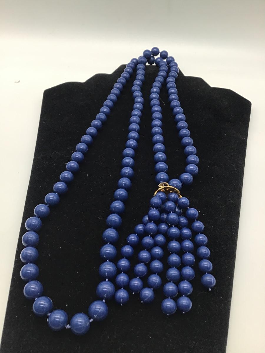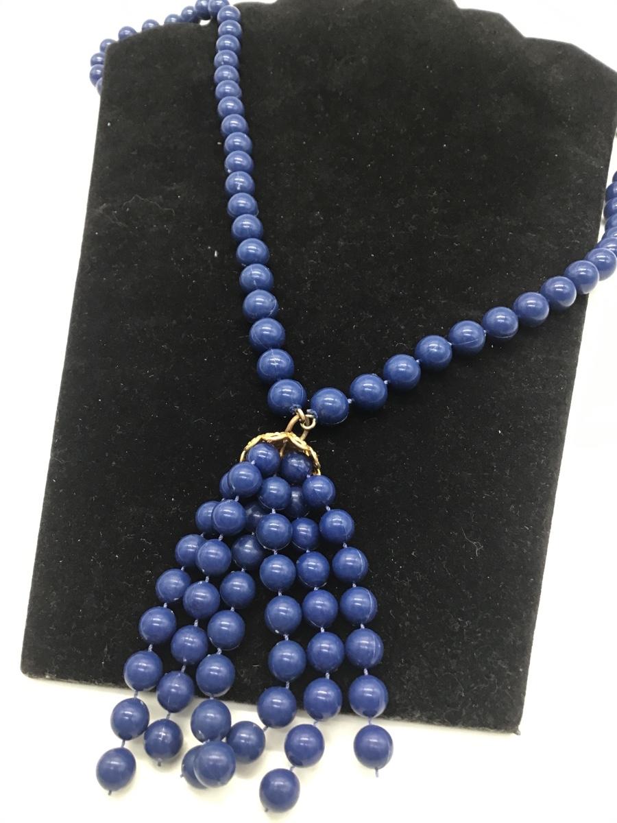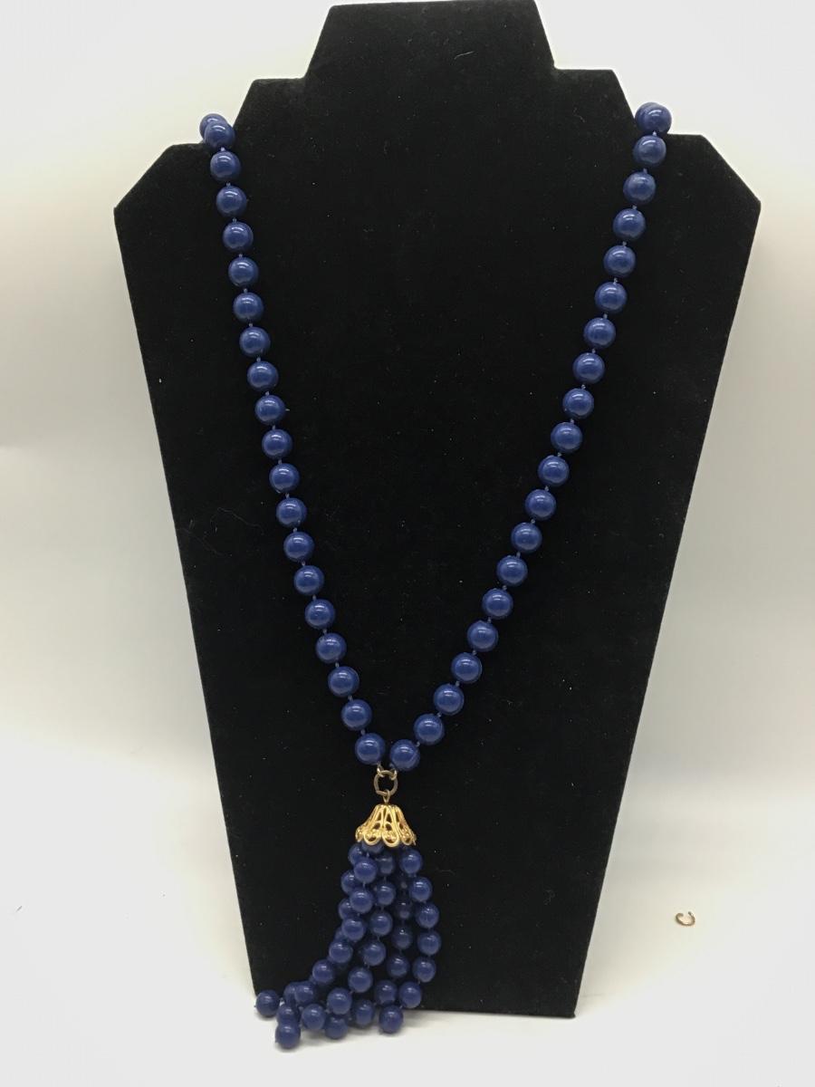 Blue beaded tassle necklace