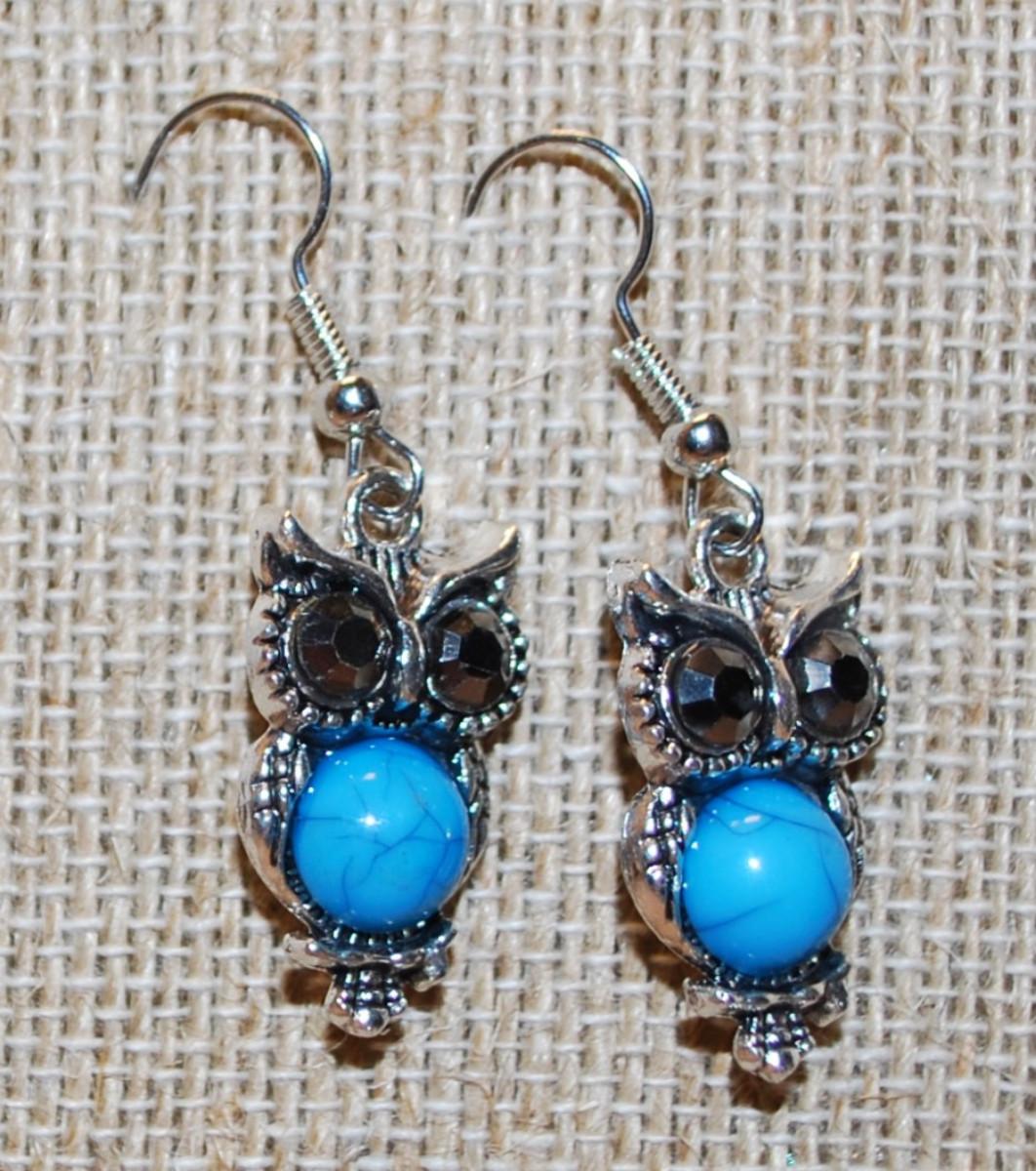 "Blue Belly" Owl PENDANT (1½" x 1") AND Earrings (1" x ½") Set on a Silver Tone Necklace Chain 27" L