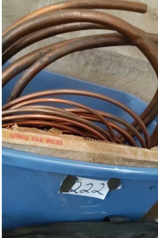 lot 222 - Blue bin of assorted size copper tubing, etc.