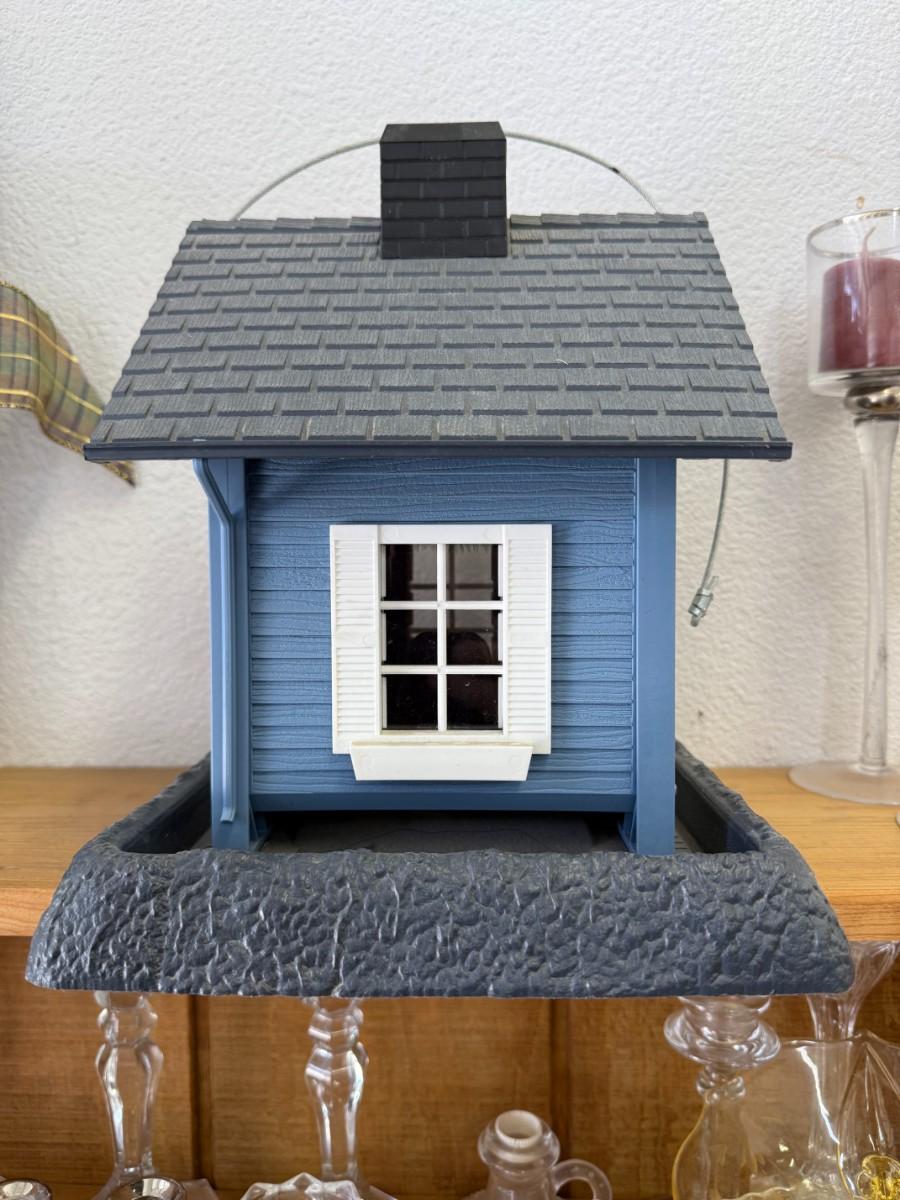 This charming blue birdhouse provides a cozy home for birds while enhancing the beauty of your outdoor space with its cheerful hue.