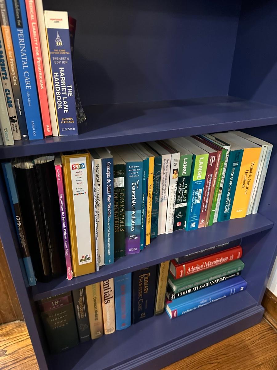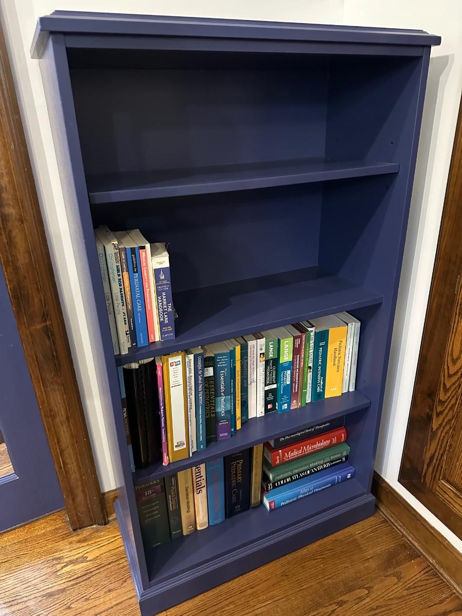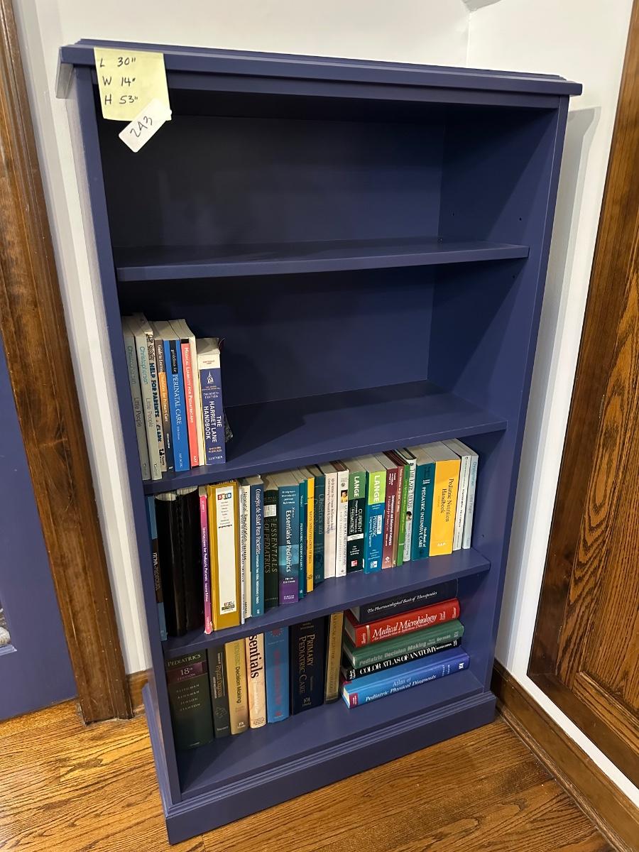 BLUE BOOKSHELD WITH CONTENTS 30X14X53