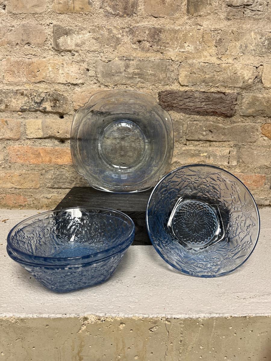 One larger, three smaller. These seem to be 80's made (maybe Anchor Hocking by the color) Pretty