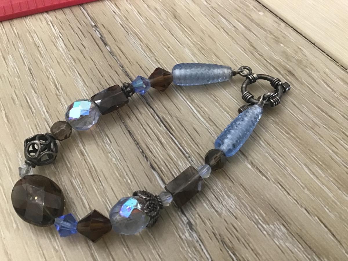 Blue Brown glass toggle Bracelet