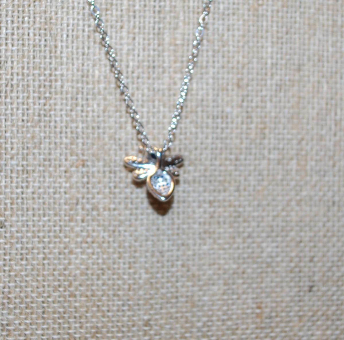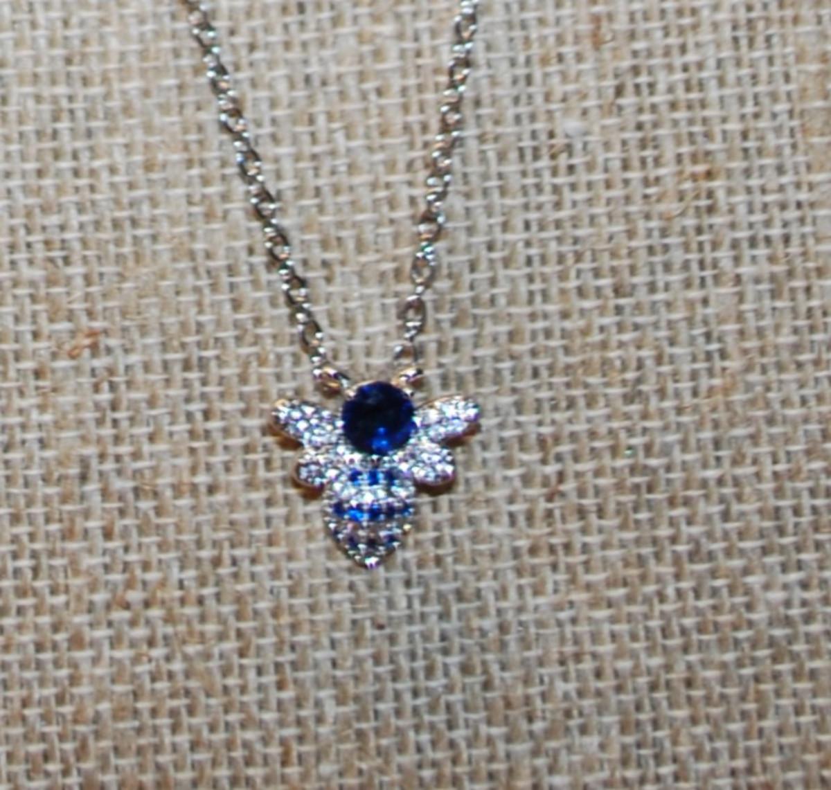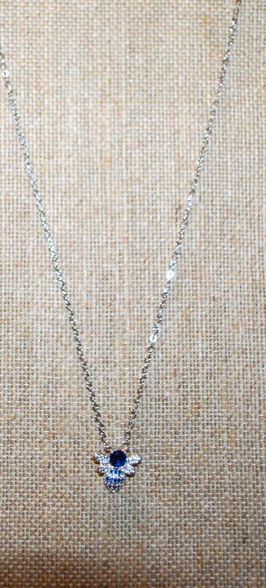 Blue Bumblebee PENDANT (¾" x ¾") on a Silver Tone Necklace Chain 17" L