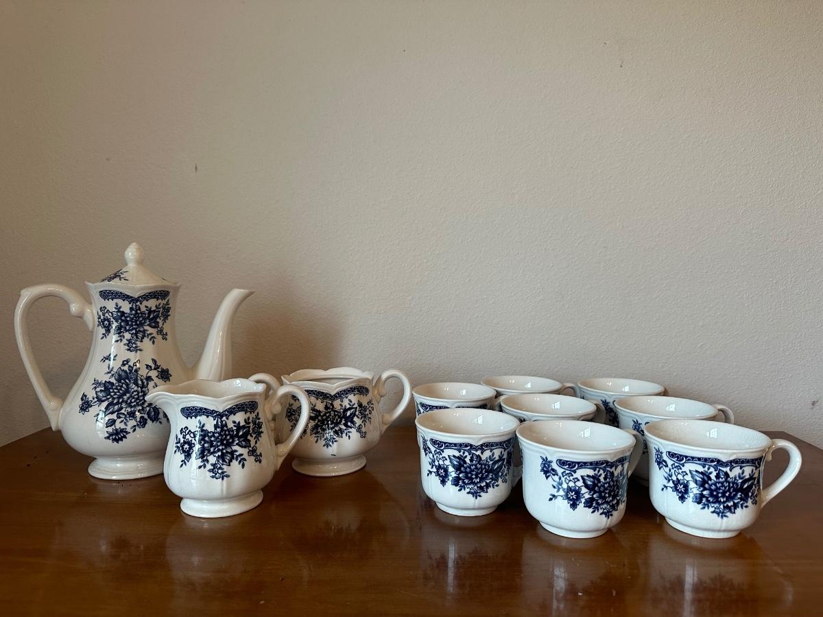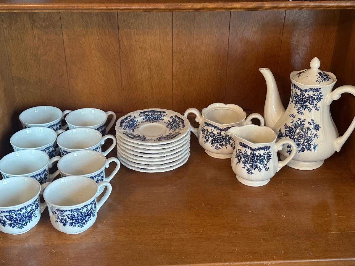 Blue Carnation Ironstone Coffee (20) Piece Set - Dishwasher Safe