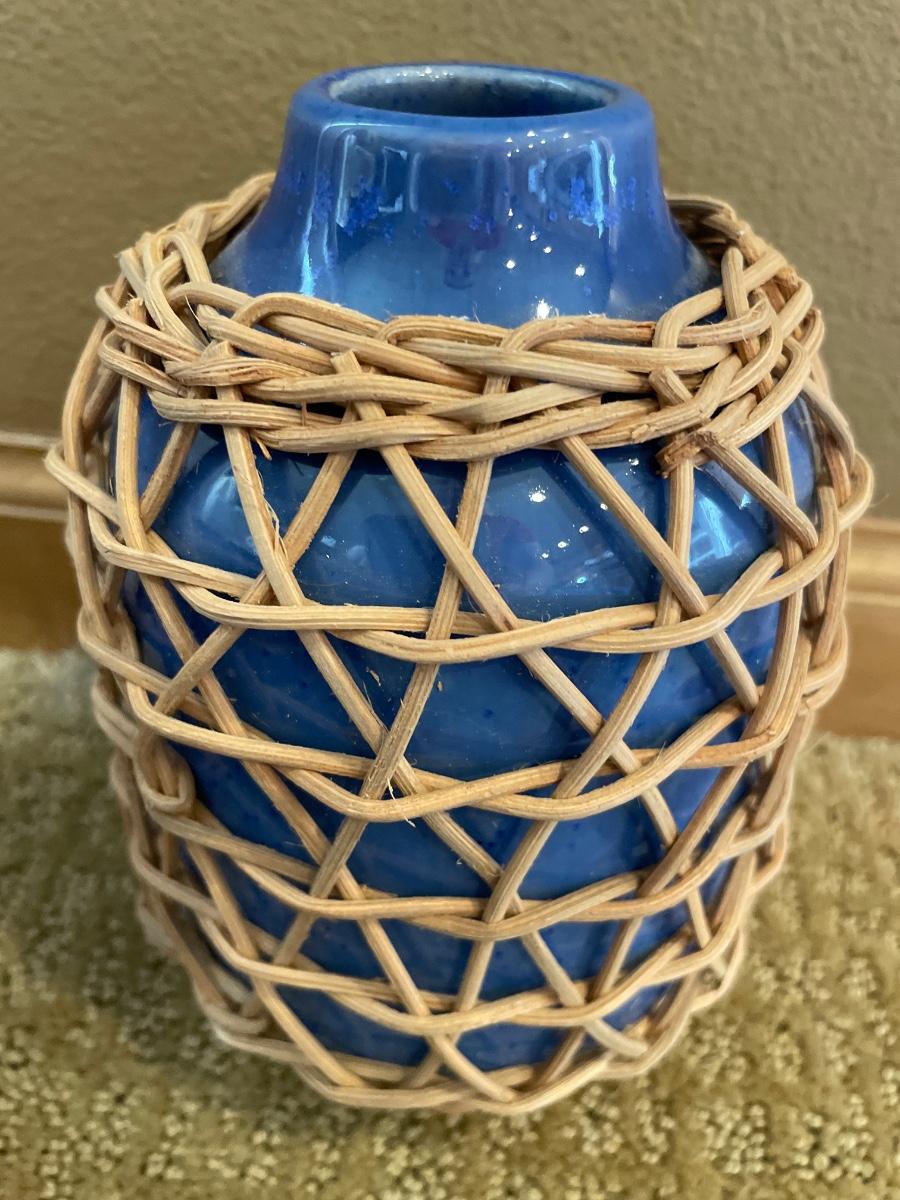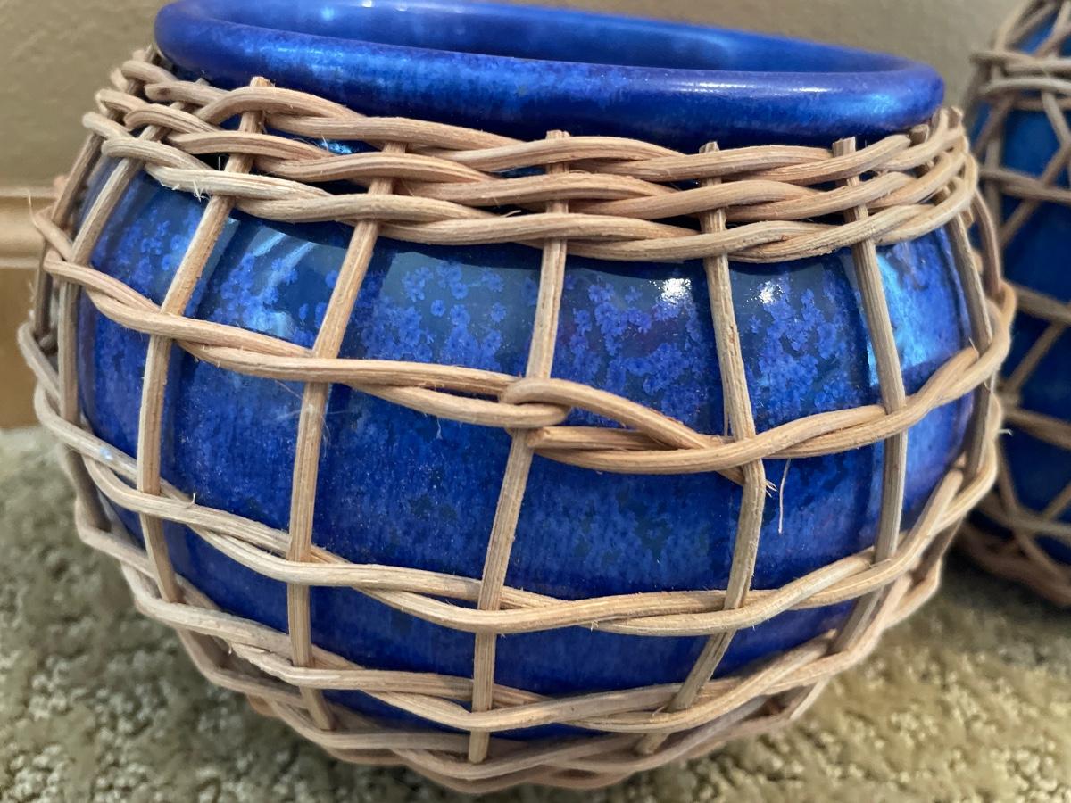 Blue ceramic decor with wicker