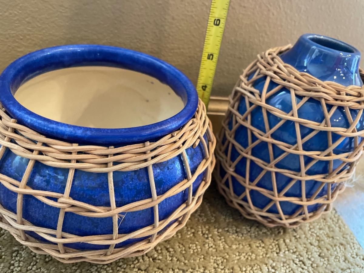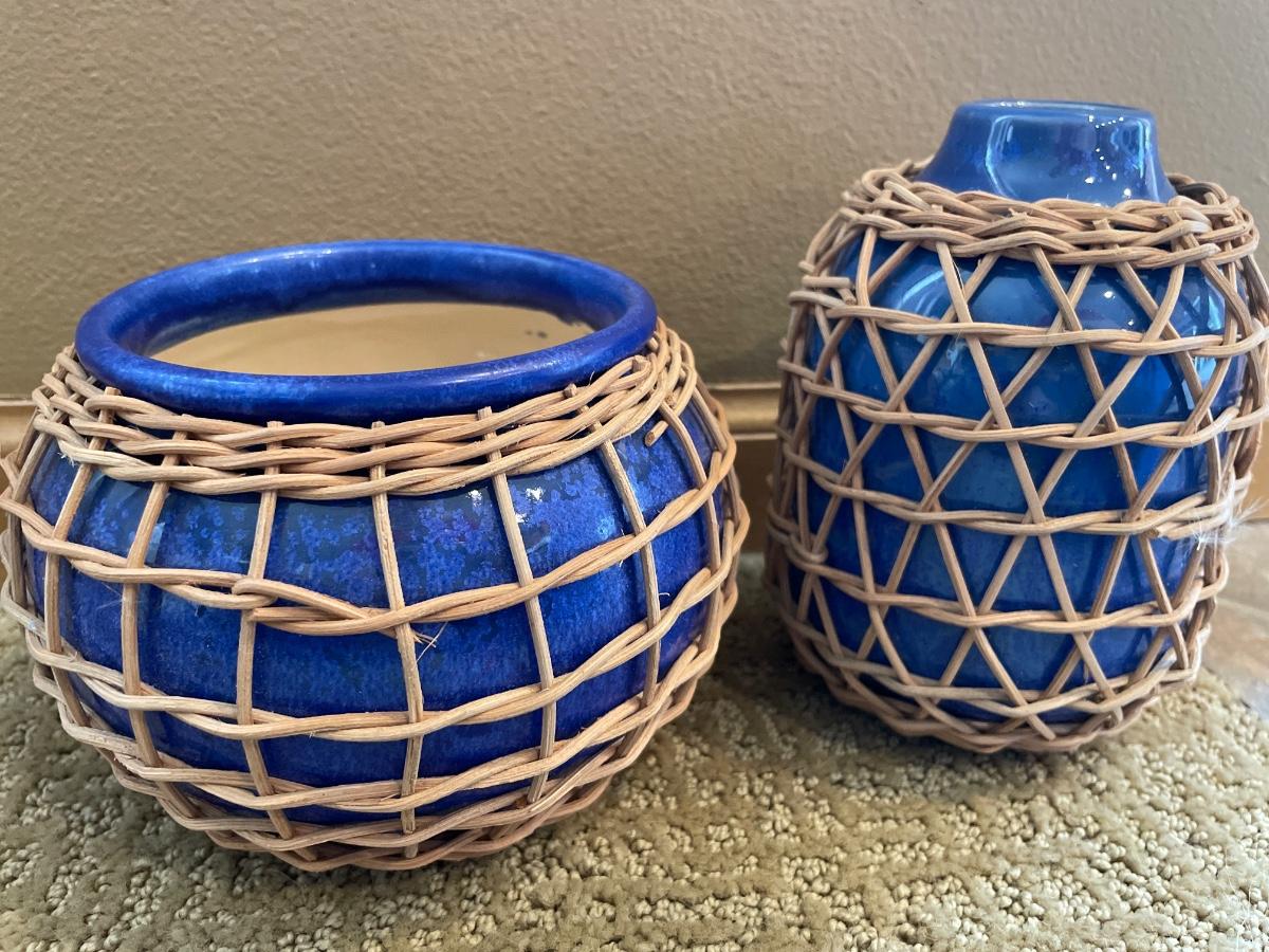 2 ceramic vases with wicker