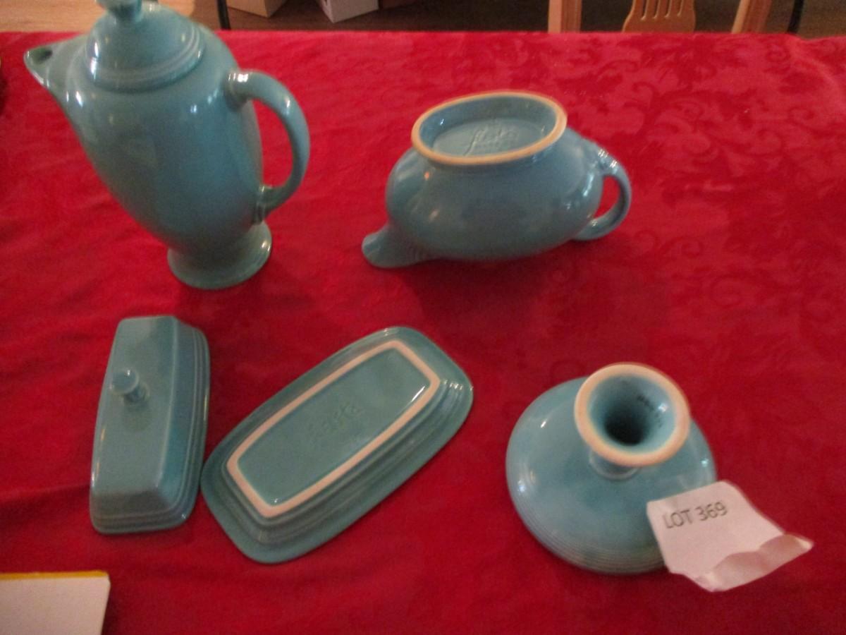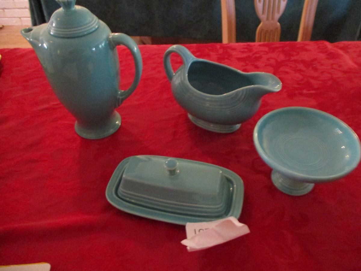 Gravy Boat & Butter Tray labeled Fiest. All pieces great condition