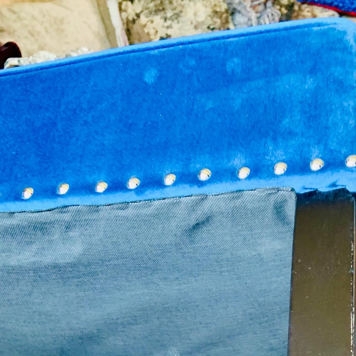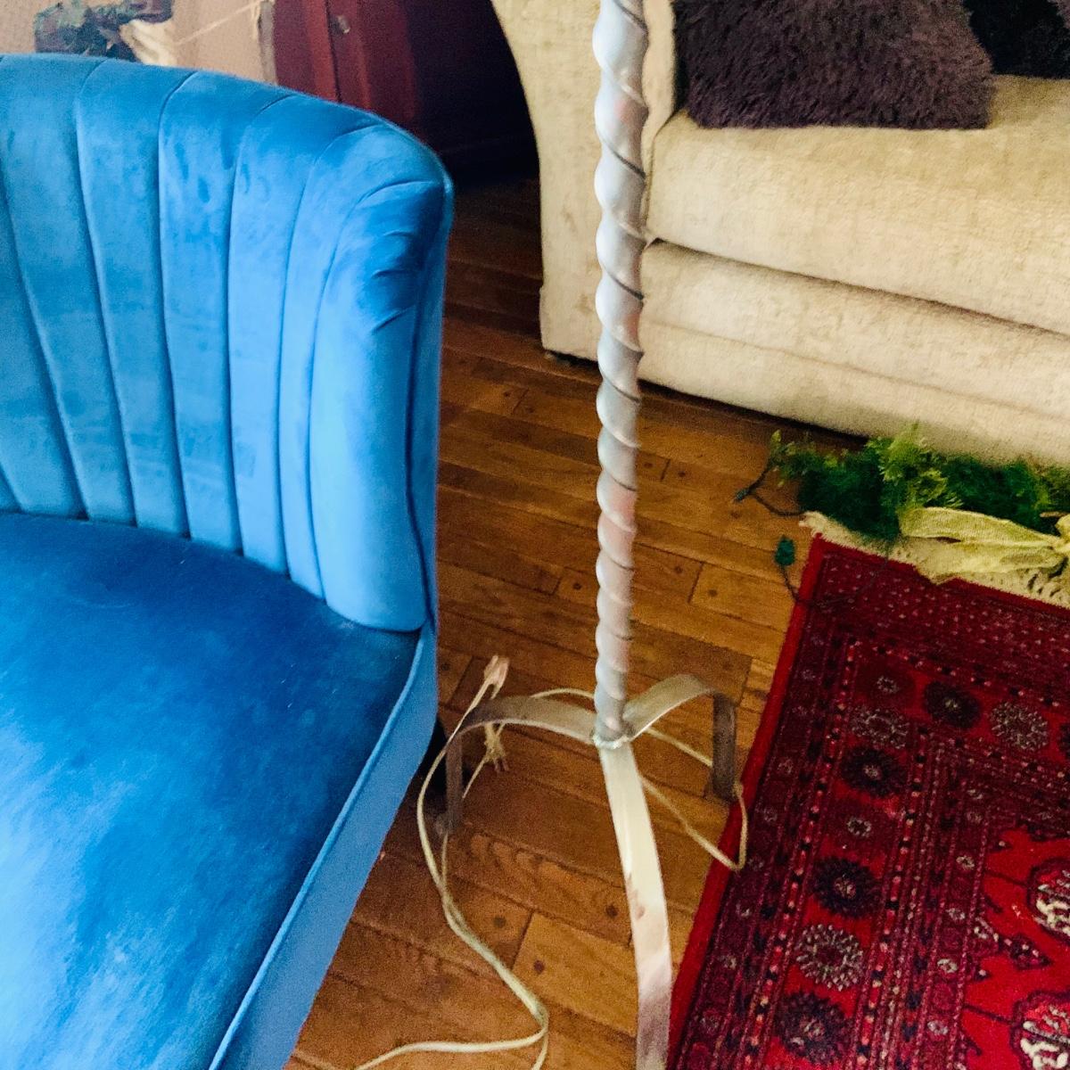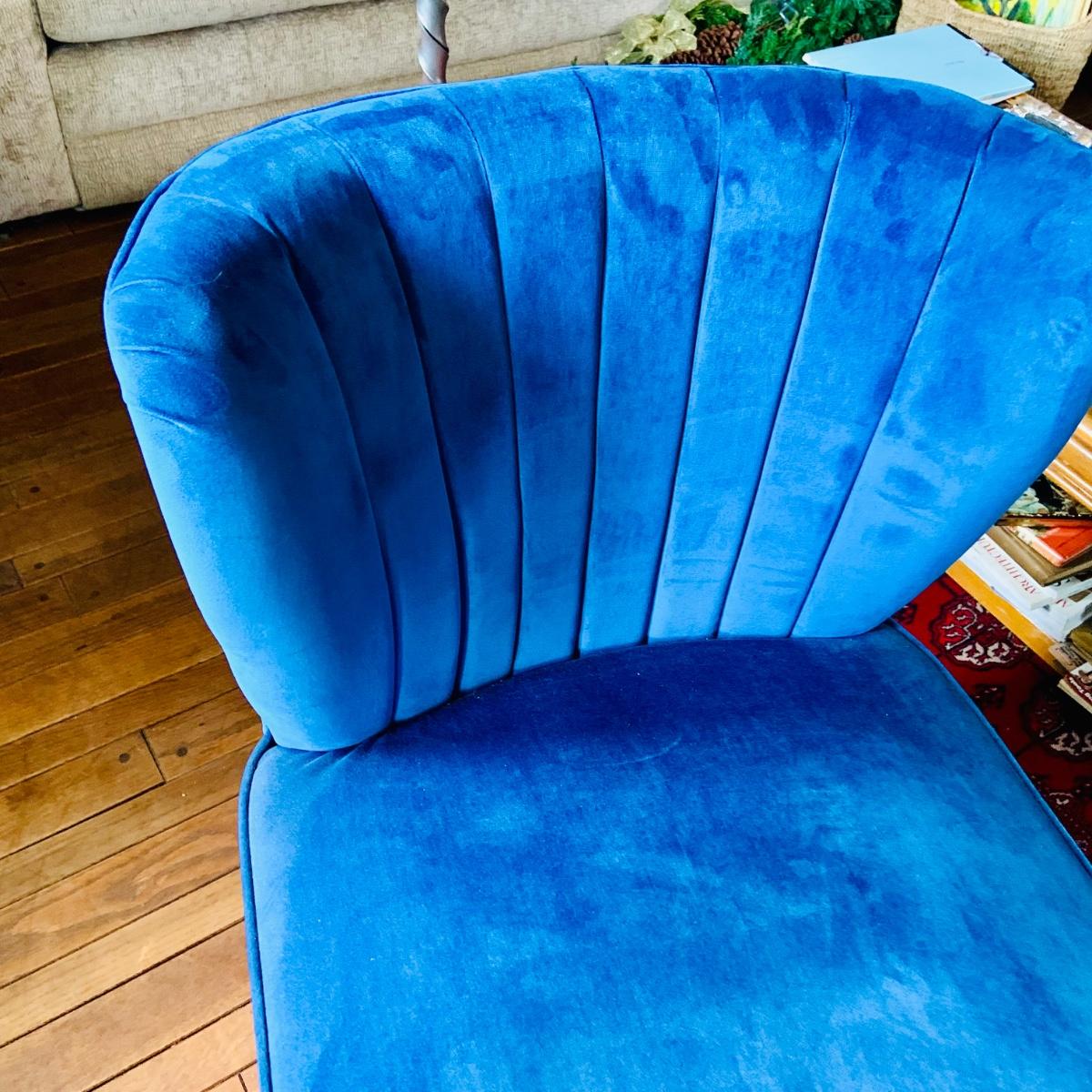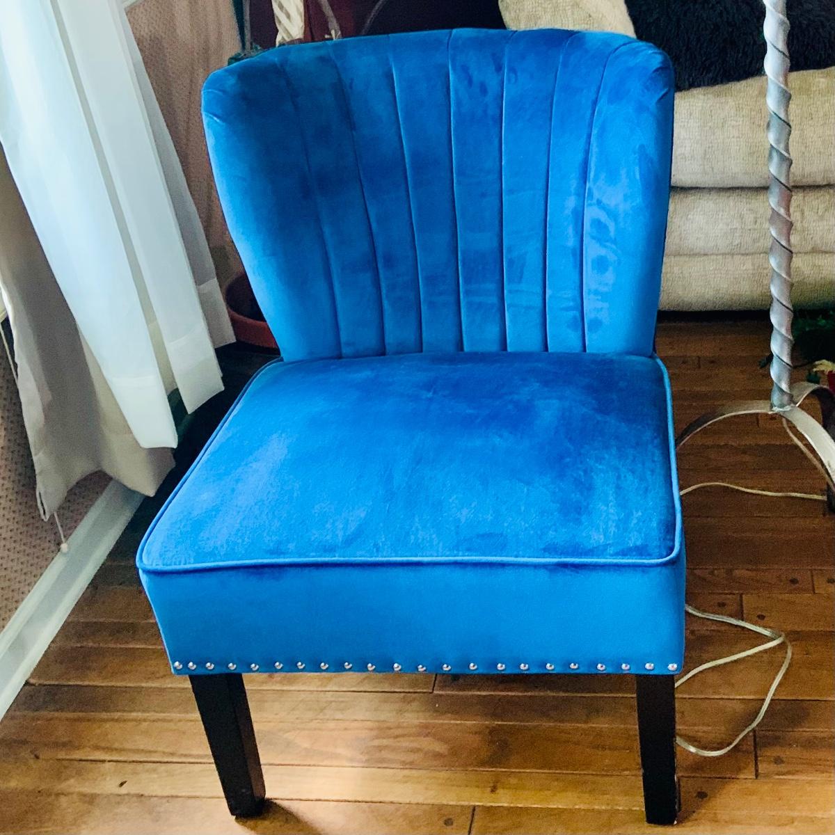 Lot 278: Blue Velvet Accent Chair and Lamp