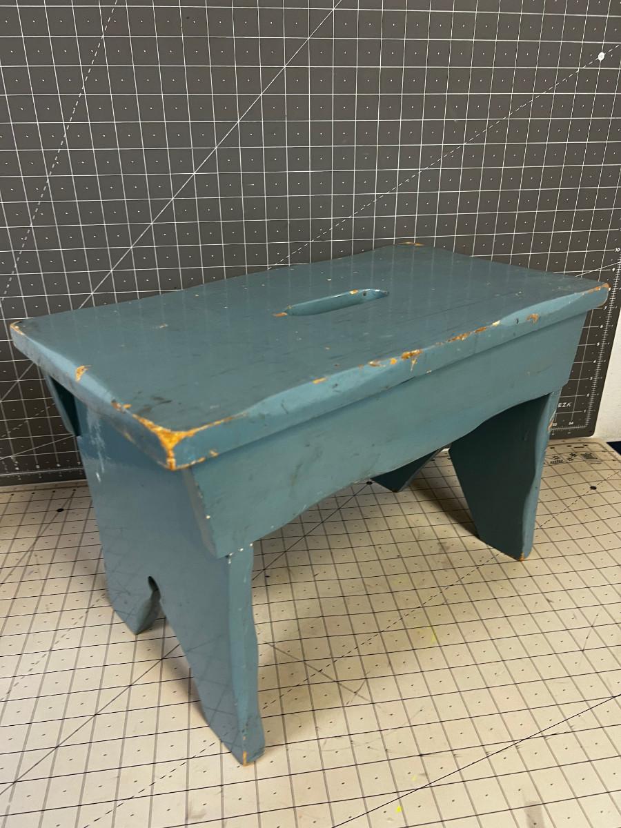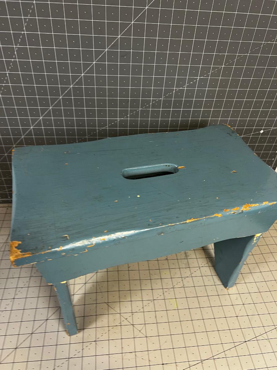 Blue Chippy Paint Wood Foot Stool