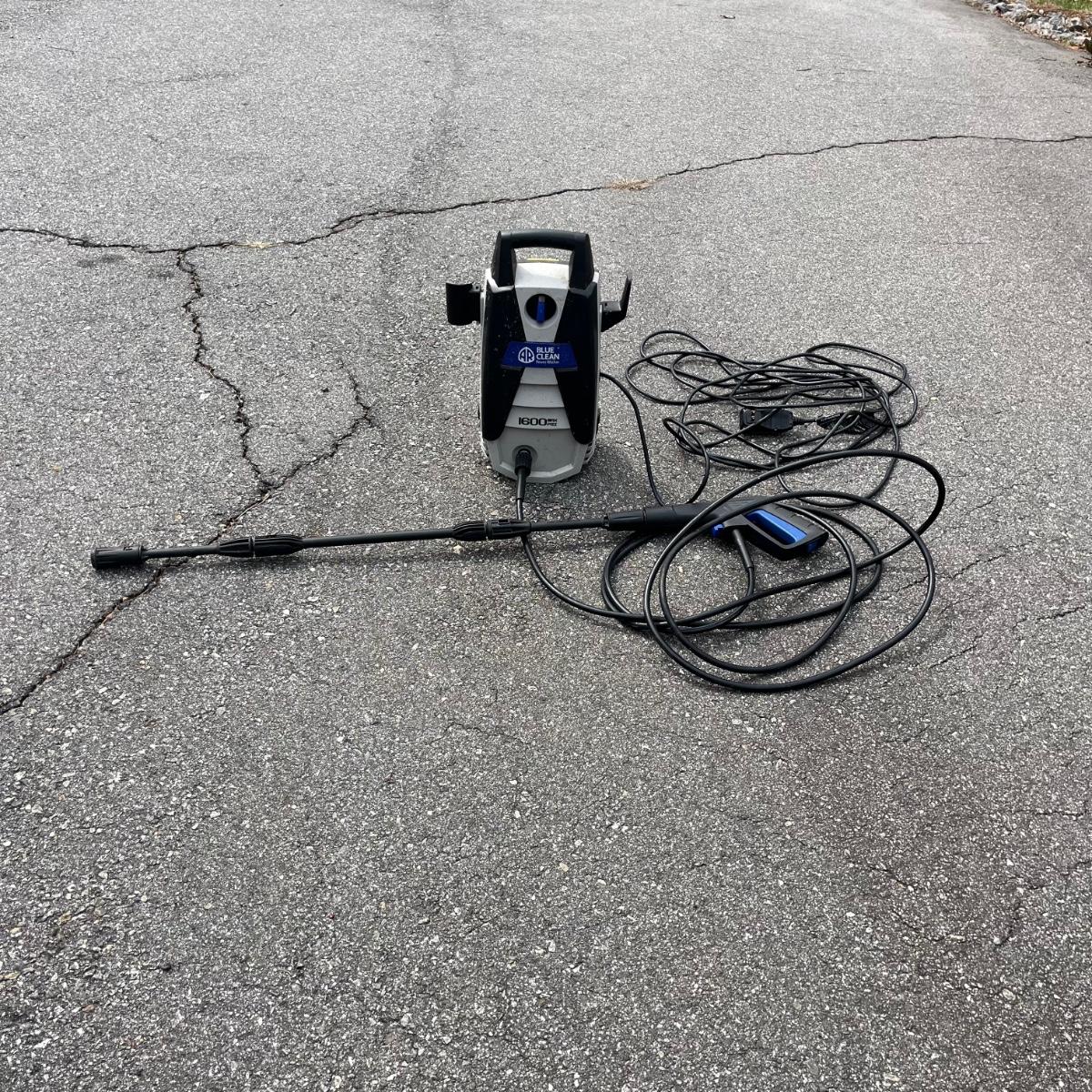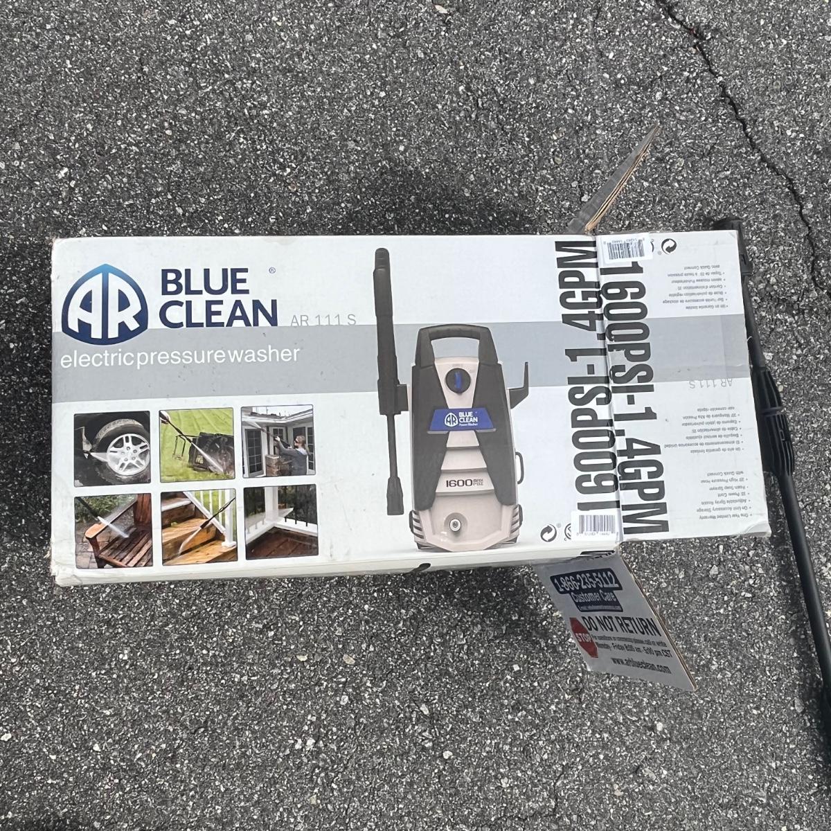 Lot includes a AR Blue Clean electric pressure washer. Machine powered on when plugged in.