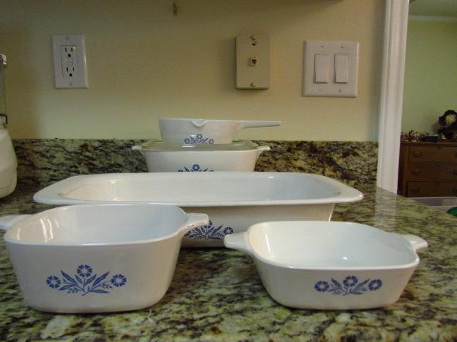 Blue Cornflower by Corning Ware- 5 Dishes, 1 Lid