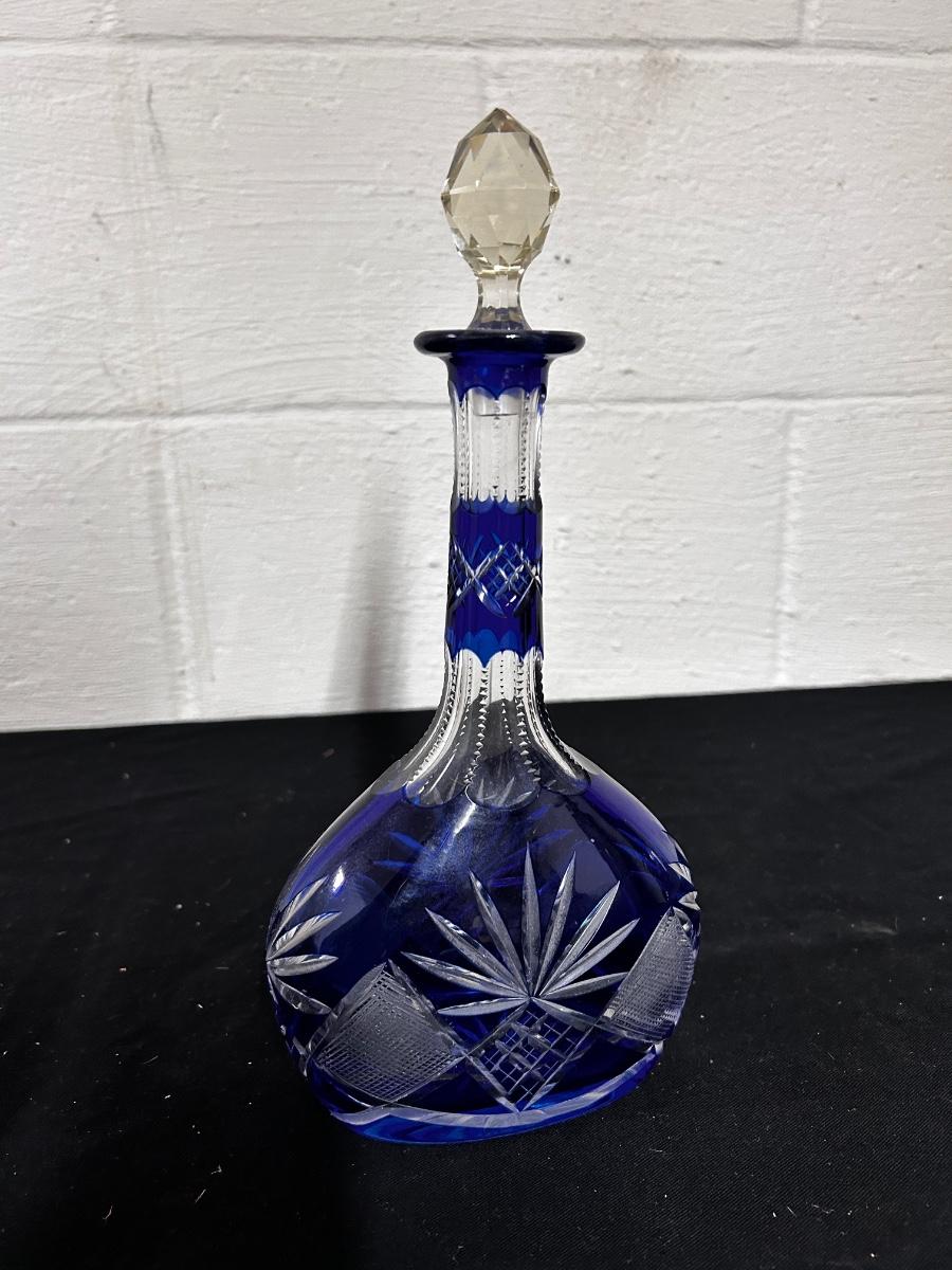 Blue Cut-Glass Decanter