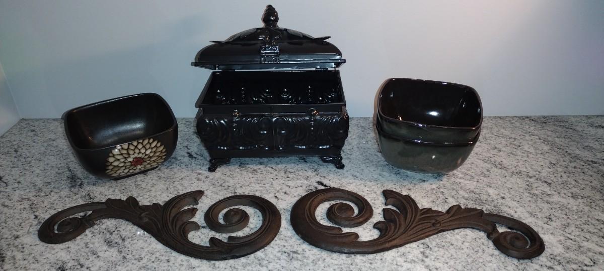 Blue decor, Black box, Metal wall Scrolls, 3 bowls