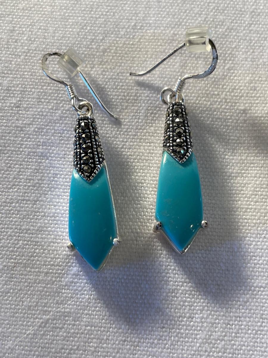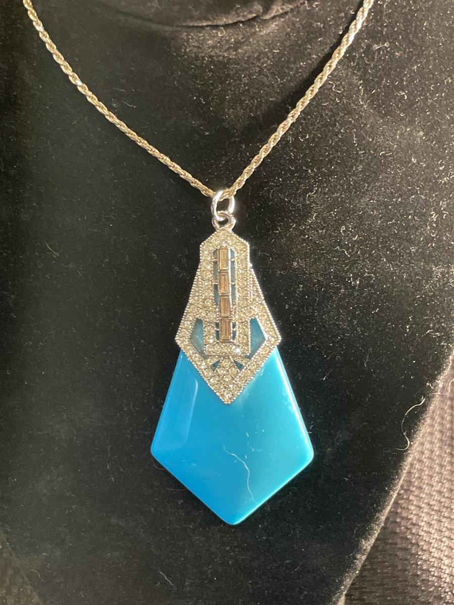 Blue decorated with rhinestone necklace and earrings